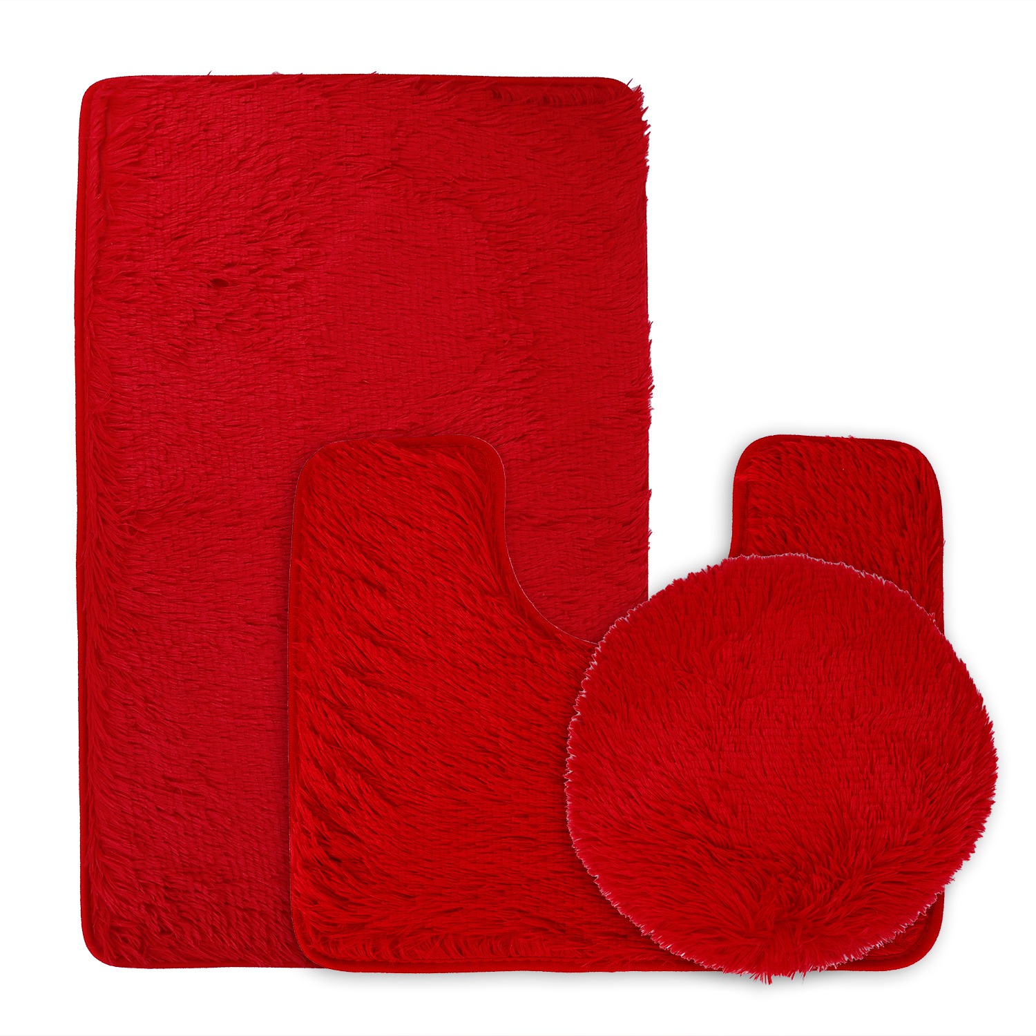Home > 3Pcs Bathroom Rug Set Shaggy Contour Toilet Lid Cover Plush Mat Anti-Slip Absorbent Bath Carpet For Tub Shower Bathroom