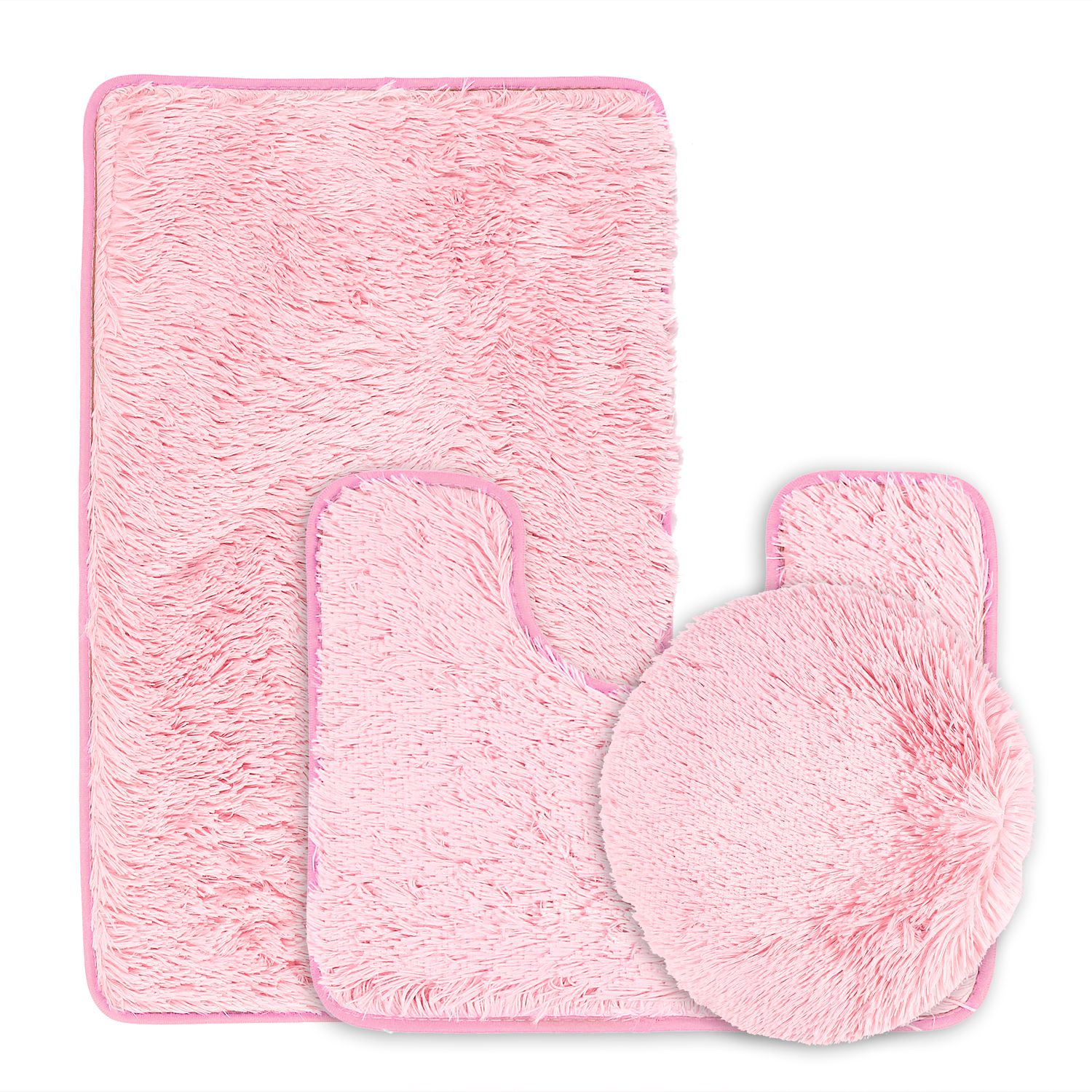 3Pcs Bathroom Rug Set Shaggy Contour Toilet Lid Cover Plush Mat Anti-Slip Absorbent Bath Carpet For Tub Shower Bathroom
