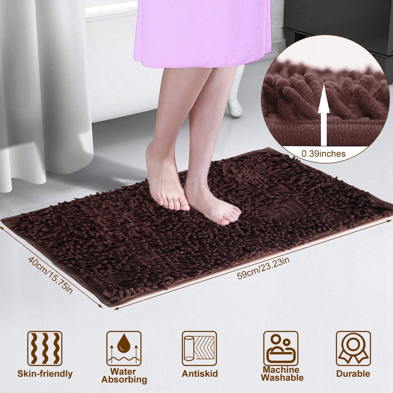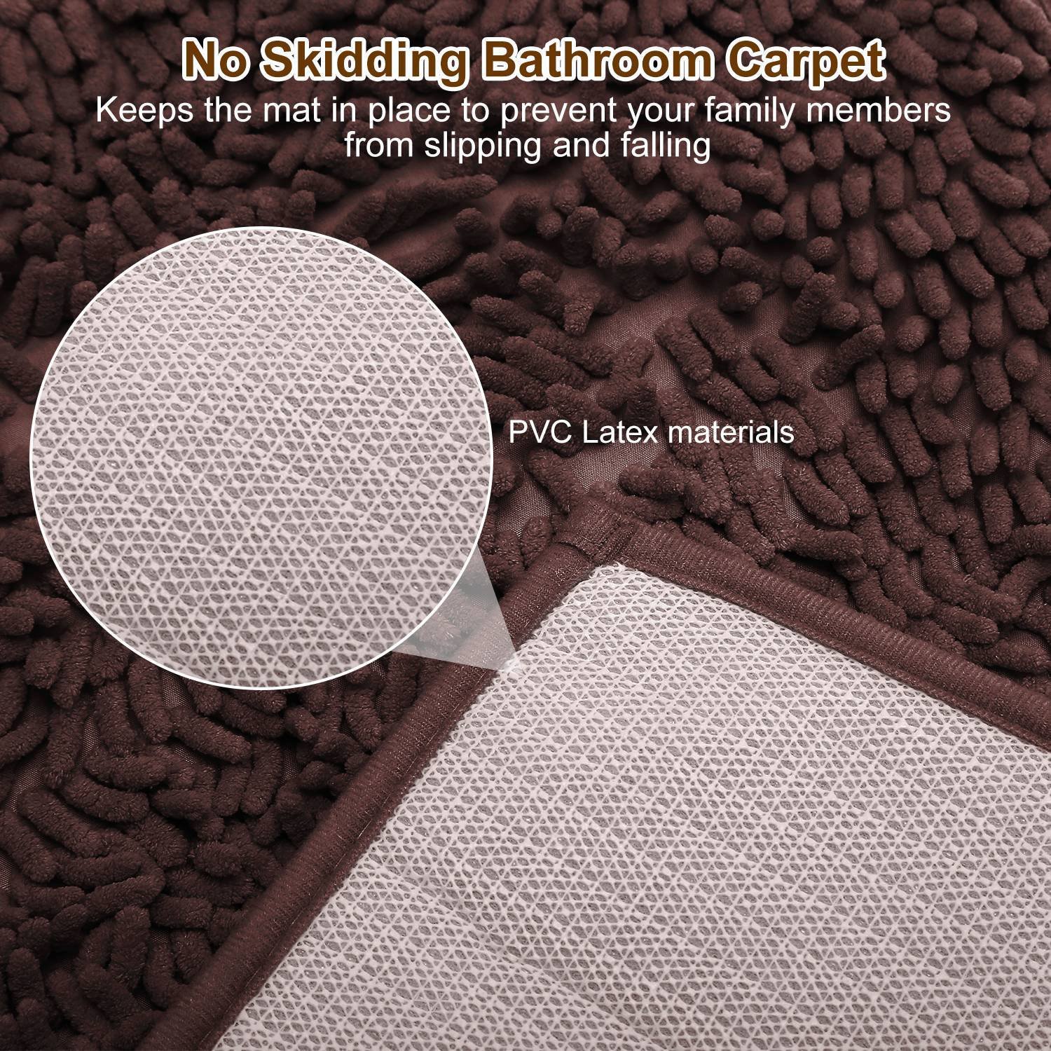 Our bathroom mat is made out of chenille fabric microfiber, anti-skid and comfortable. High-pile and thick Chenille fabric free your floors from dripping water while you're stepping out of the bath. PVC Latex bottom and small pattern is designed to prevent skidding and shifting, to protect you and your family members from slipping and falling. Machine washable and durable enables it to be widely used in bathroom, toilet, poolside, or beauty care business etc..