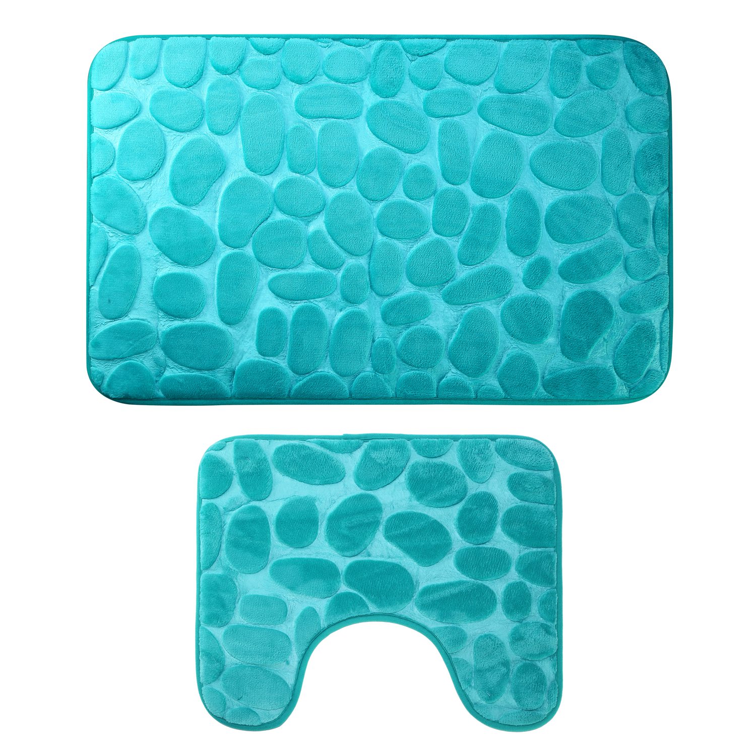 Are you looking for a set of non-slip bathroom rugs for your bathroom?Our 2 pcs/set flannel non-slip mat set including a square floor mat and a U-shaped toilet rug are made of high-grade flannel, thick and soft foam and PVC polyester, which are BPA-free, anti-bacterial and skin-friendly, perfect for bathroom use. The PVC net in the bottom can keep the bath mat staying in place, preventing slipping or sliding to provide more security to you and your family. The pebbles-shaped patterns are cute and can give a natural massage function to our feet to accelerate blood circulation and relief fatigue. The mat also features with great absorbent function, which can soak up the water like sponge and keep your floor dry quickly, keeping away from any mildew or moldy. The mats are easy to clean, you can machine-wash them without worrying shrink, deform or color-fade.