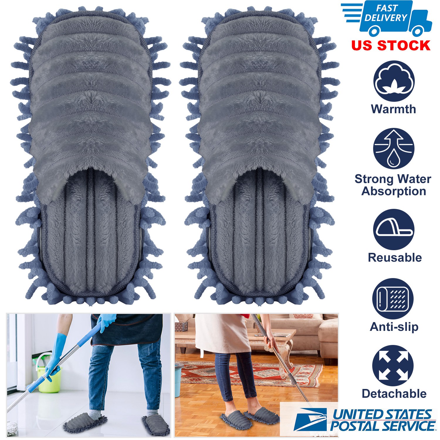 Made of soft fleece fabric, give you a good wearing sense. The microfiber fingers on the bottom of our slippers can catch hair, dust and dirt like a mop easily and quickly. These house cleaning slippers allow you to keep your wood, tile, and vinyl floors clean while simply walking through your home. With a fasteners design, the sole is detached for washing. When you are too lazy to mop the floor, just wear the slippers, then it can help you to mop the floor.