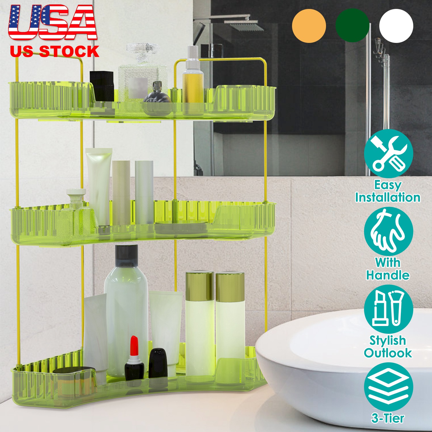 Home > Bathroom Countertop Organizer 3 Tier Corner Makeup Storage Shelf Vanity Cosmetic Perfume Tray Clear Corner Rack for Bedroom Bathroom Kitchen
