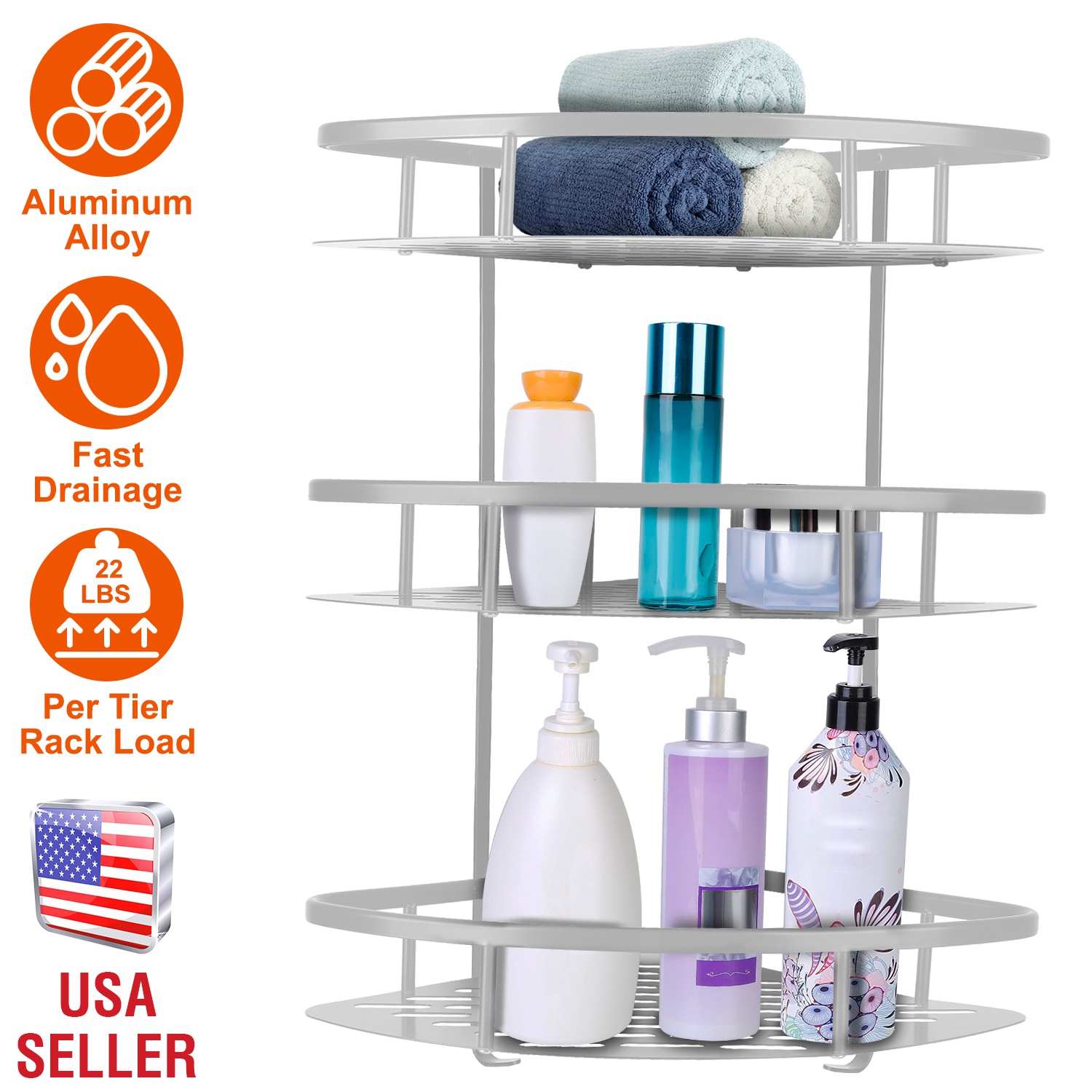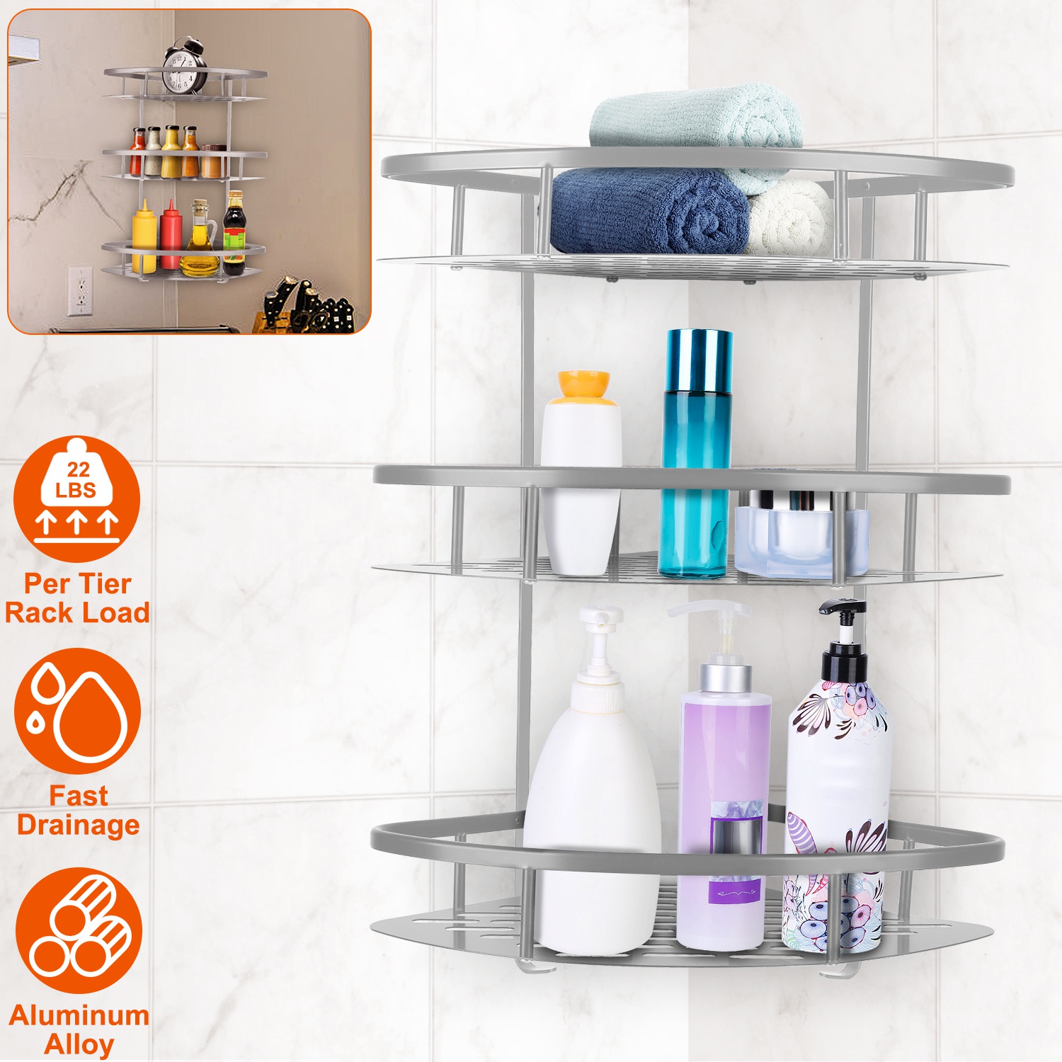 3 Tier Wall-mounted Corner Shower Caddy Shelf Rack Shower Shampoo Soap Cosmetic Basket Organizer