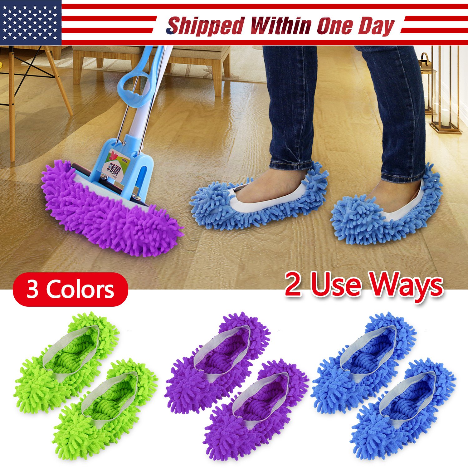 Are you still bending over and mopping your floors every day? Our cleaning mop shoes cover offers you a new easier and funnier way of mopping. The shoes cover bottom is made of long chenille fiber, which can clean the dirt, dust and pet hair on the floor easily. The flexible and soft fabric material and stretchy elastic opening make it fitting any sizes for adults and kids, you can invite your whole family to wear the shoes cover and clean the floor, making cleaning a fun thing. You can wear it over your shoes, slippers, socks and bare feet or even put it on the mop; you can use it in your kitchen, bathroom and living room. Besides, our mop shoes cover can be machine-washed, making it more convenient to use. There are blue, purple and green colors for you to choose, adding some bright color to your daily cleaning errands.