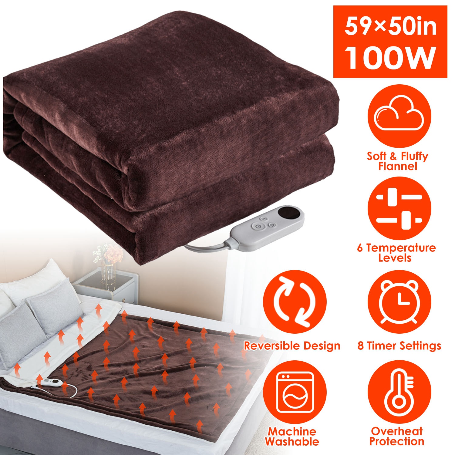 Home > Electric Heated Flannel Throw Heated Blanket with 6 Heat Settings 1-8 Hours Auto off Washable for Home Office Usage 59x50in