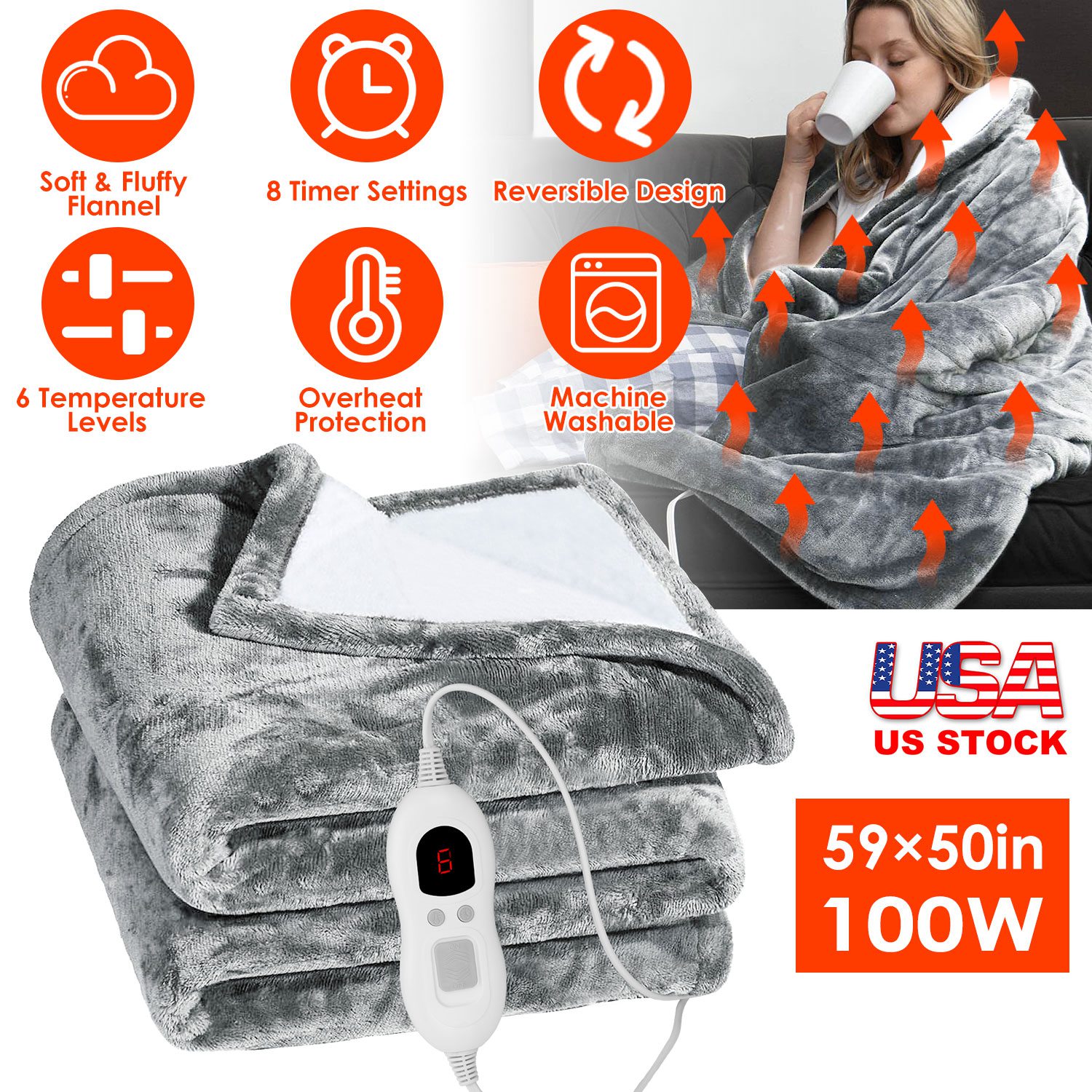 Electric Heated Flannel Throw Heated Blanket with 6 Heat Settings 1-8 Hours Auto off Washable for Home Office Usage 59x50in