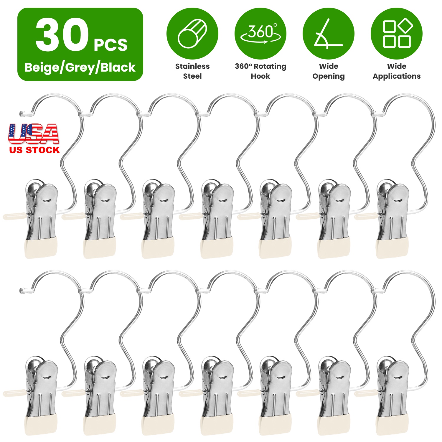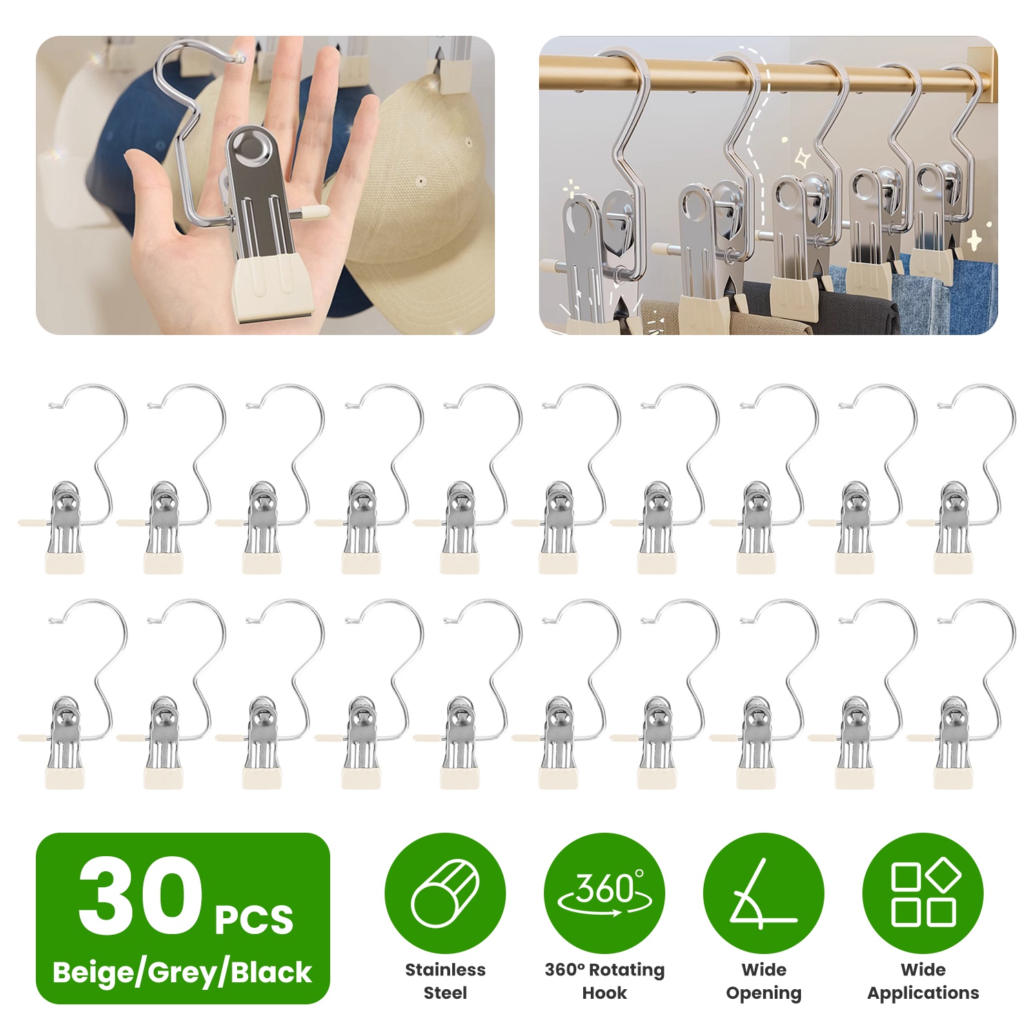 30 Pack Hanging Clips for Closet Multifunctional Clothes Pins Heavy Duty Space-saving Laundry Hooks for Boots Jeans Hats Towels Socks Pants Handbags T