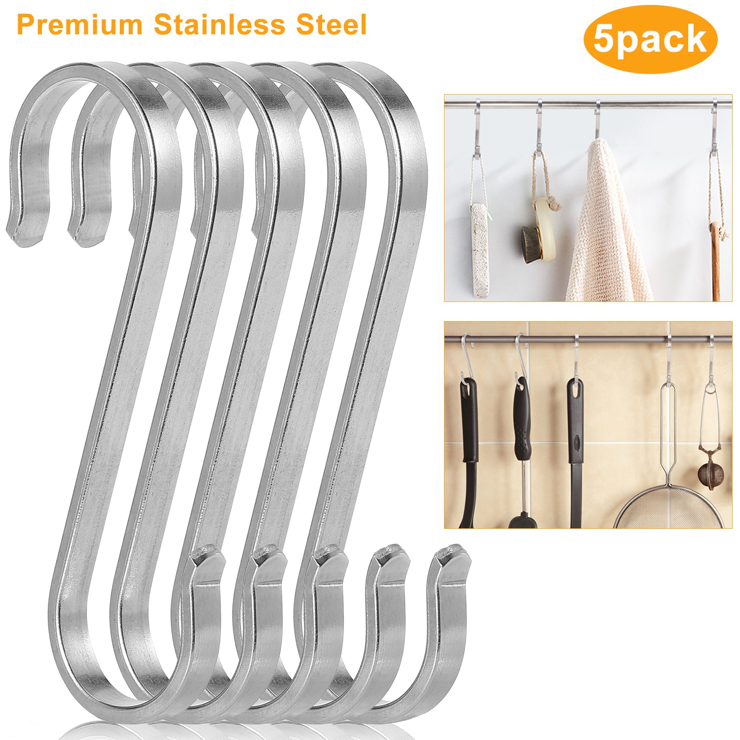 Home > 5 Pcs Flat S Stainless Steel Hooks Heavy Duty Hook Hangers for Kitchen Bathroom Closet Store