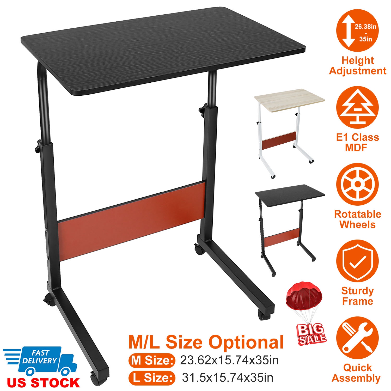 Home > 23.62x15.74x35in Mobile Laptop Desk Height Adjustable Rolling Wheels 77LBS Load Standing Table Sofa Bed Side Desk Cart Home Office Use