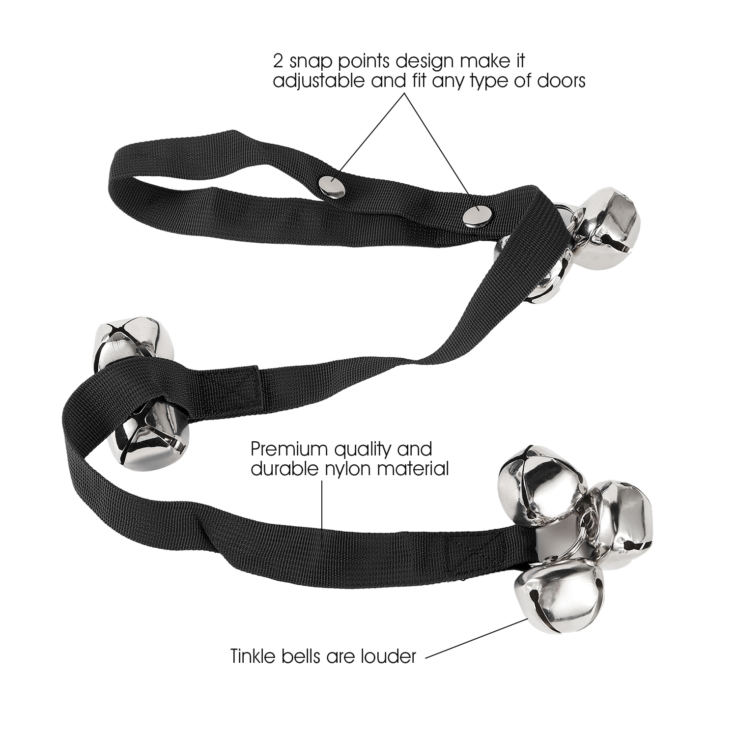 Our dog doorbells is designed with 7 extra loud bells, which is yet easy on your ears to attend to your pet's nature call wherever you are in the house. Our dog doorbells has unique handle rivet, which can be tightened on any size of door knob or hook, to make sure your puppy won’t take it off. Also, it can be hung on the fence or window, for any situations as you need. Moreover, it is very easy to train your pet to let you know when he/she needs to go outside or coming in or go to toilet via ringing the doorbells instead of barking and scratching to the door. Adopts high-quality widened nylon material which is incredibly durable and can effectively resistant to pull and bite from your dog. Warm Tips: Dog bells are known to be one of the proven methods to train your puppy to engage you as part of toilet training it. Few rounds of repetitive and positive reinforcement, your pet will get accustomed and excited to ring its new bells.