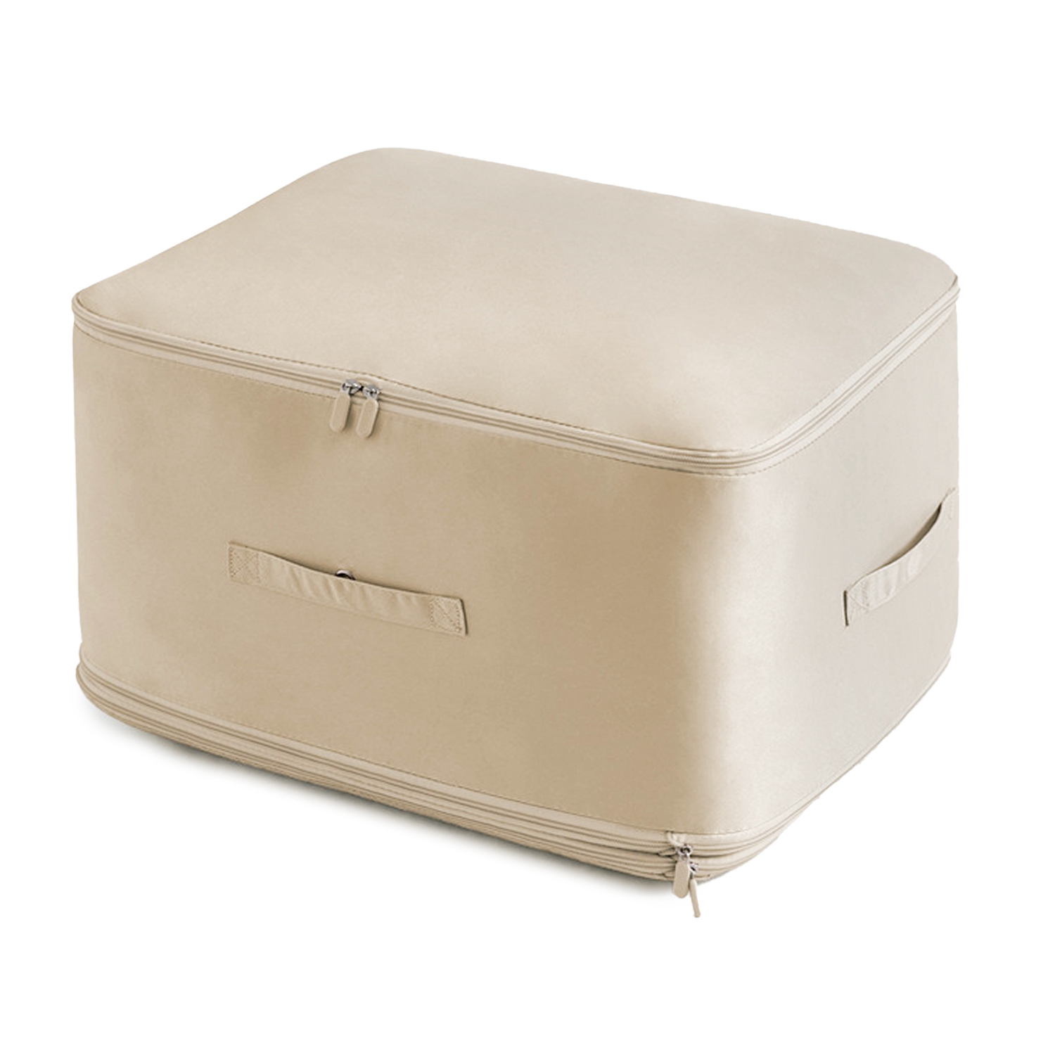 Offering ample storage space for bedding, clothes, and other soft items, our large closet storage organizer is an efficient solution for neatly storing seasonal items or organizing your closet space. Reinforced double-stitched handles ensure reliable load-bearing capacity while dual-zippered design makes it easy to fetch and organize clothes. Made of smooth nylon fabric, our reusable folding storage bag for comforters is wear-resistant, dustproof, moisture-proof, waterproof, and supports machine washing. A reliable solution for decluttering your living space.