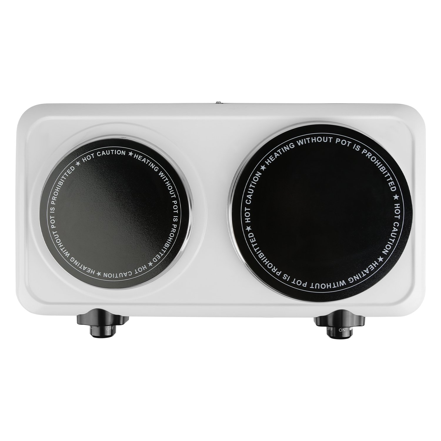This compact infrared dual burner is great for events and traveling! The lightweight and compact design allows for easy storage and carrying. The hot plate burner with special infrared technology distributes heat quickly and evenly for great performance at 302-1022℉ stepless adjustable temperature. 7.5in-Diameter & 6.3in-diameter glass heating plates make it suitable for most cookware with diameter≤7.5in/6.3in, such as frying pans, woks or stovetop teapots made from aluminum, stainless steel, iron, glass, etc.. Perfect for camping, student accommodation, holiday homes, caravans, campers, offices or as an extra cooking surface in a busy kitchen. A sleek clean black finish adds style and a sleek appearance to this wonderful kitchen addition!