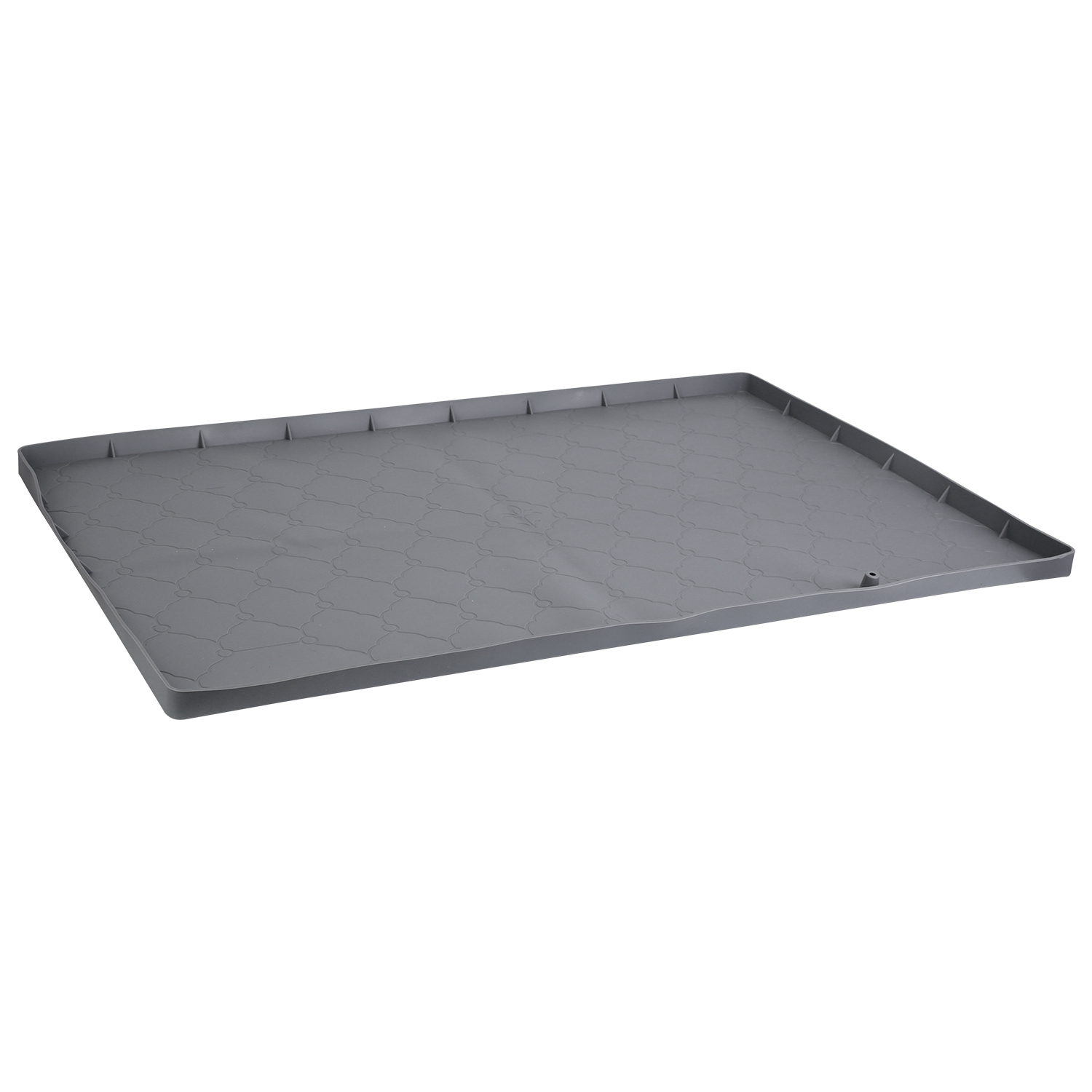 Made of environmentally friendly silicone, our under sink mat provides a secure and slip-free area for you to place your cleaning supplies or kitchen tools without slipping or sliding. Also, water or spills will be effectively contained, reducing the risk of damage to your cabinets. Holds up to 3 gallons of liquid and fits for standard 36-inch kitchen and bathroom cabinets. Also comes with a drain hole to allow for quick and efficient drainage. Easy to clean.Also suitable for pet feeding mats, access door mats, tool mats, craft mats or any other occasions to avoid mess and spills.