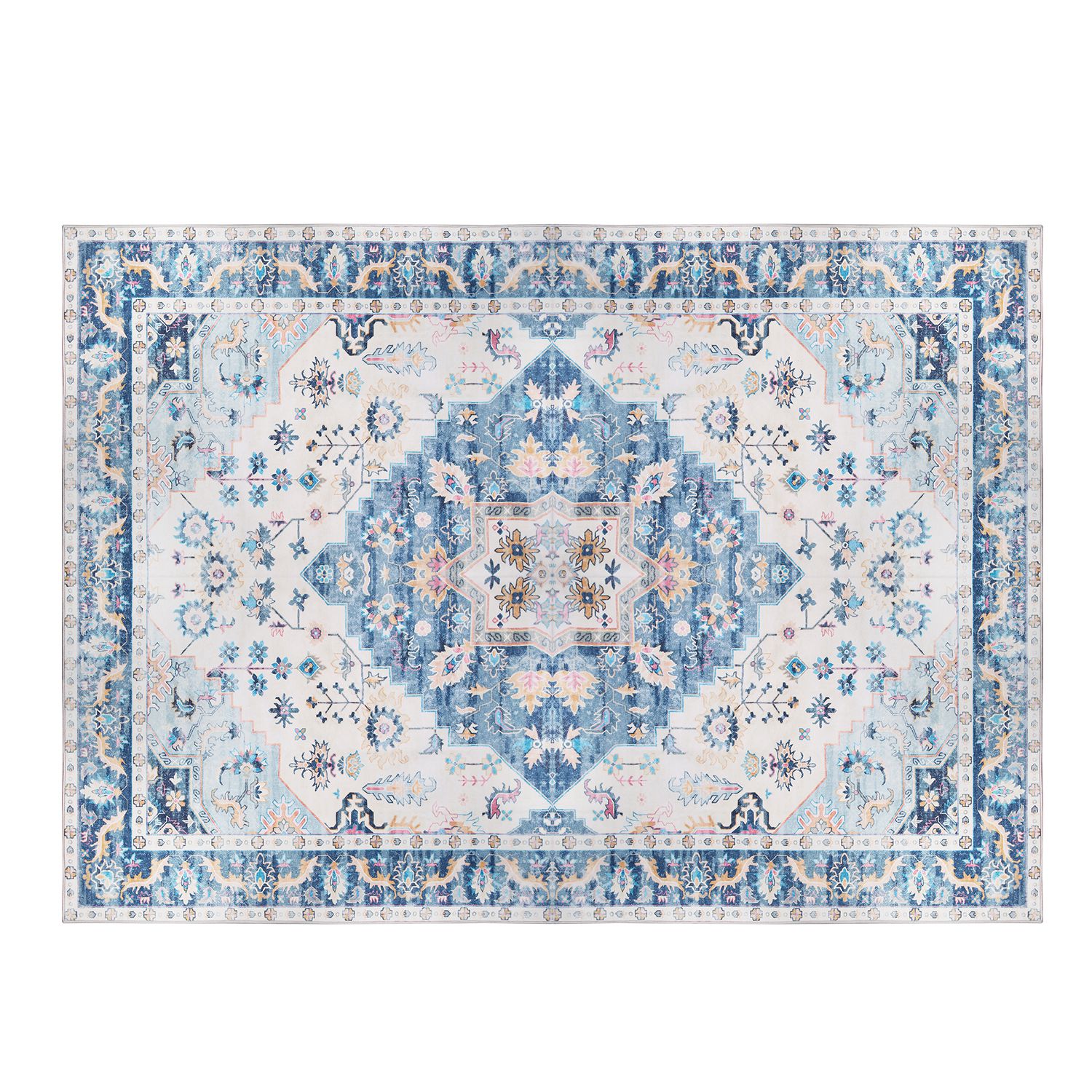 Home > 8x10FT Vintage Area Rug Modern Non Slip Carpet Boho Low Pile Soft Rug Waterproof Machine Washable Rug for Living Room Bedroom Kitchen Dining Room Unde