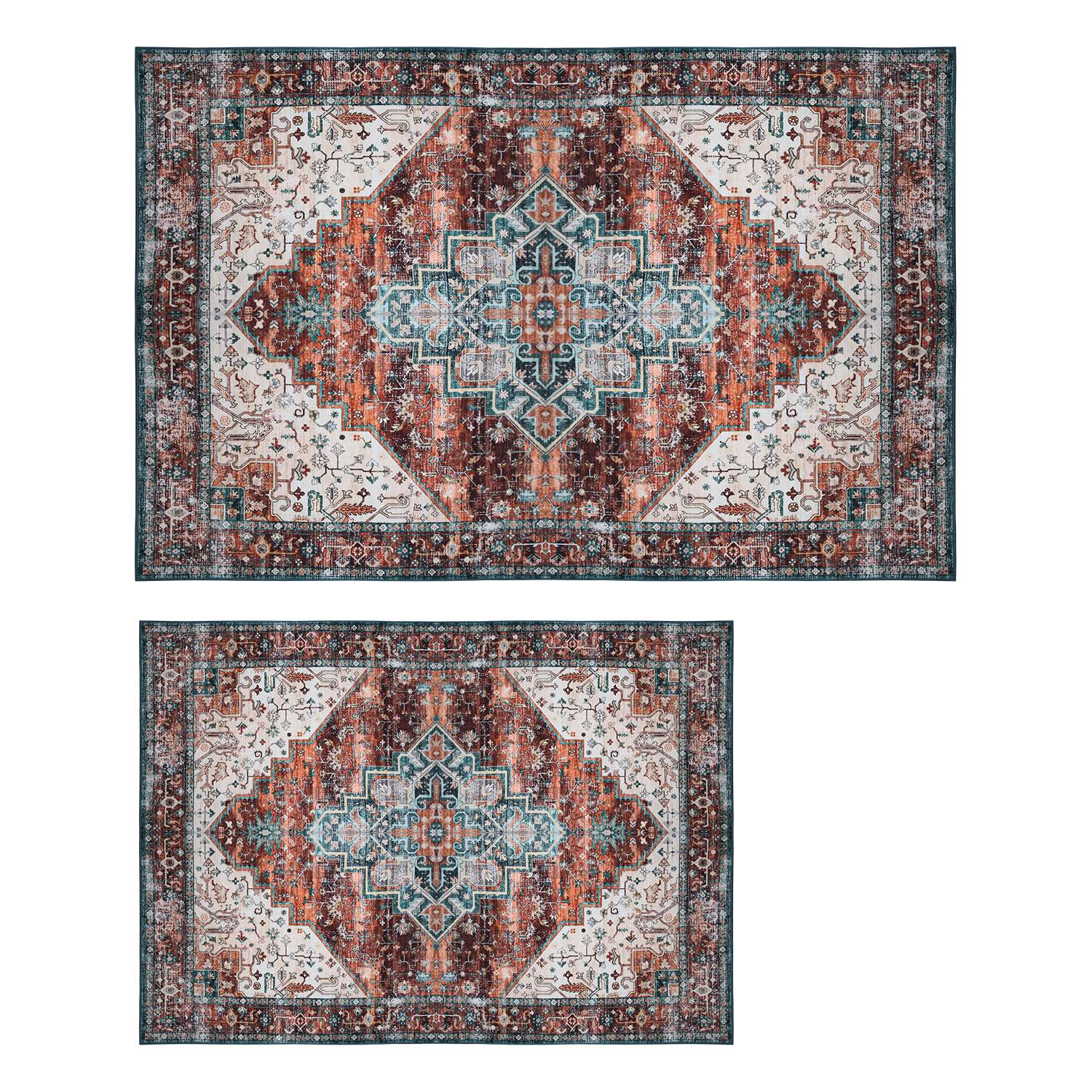 Home > 8x10FT Vintage Area Rug Modern Non Slip Carpet Boho Low Pile Soft Rug Waterproof Machine Washable Rug for Living Room Bedroom Kitchen Dining Room Unde