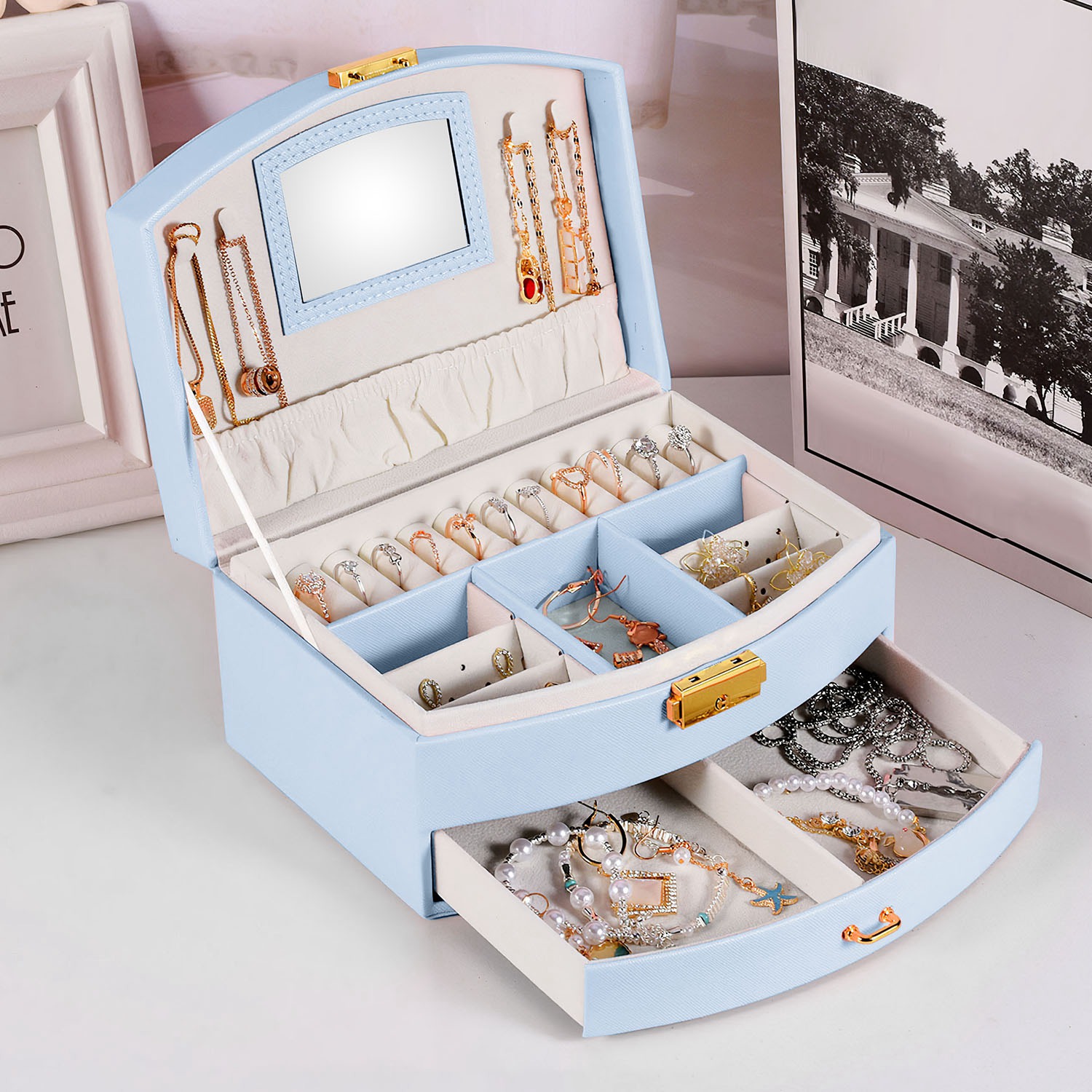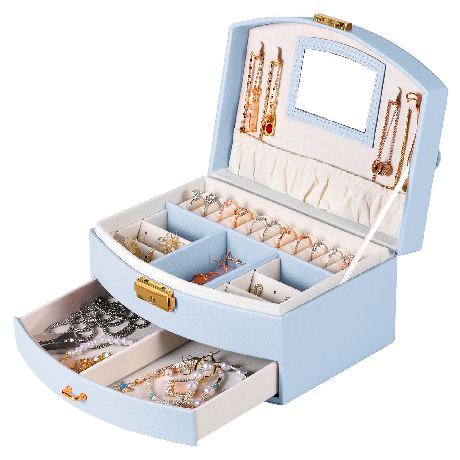 Home > 2-Layer Jewelry Box for Women Girls Lockable Leather Jewelry Organizer Jewelry Travel Case for Rings Earrings Necklaces Bracelets