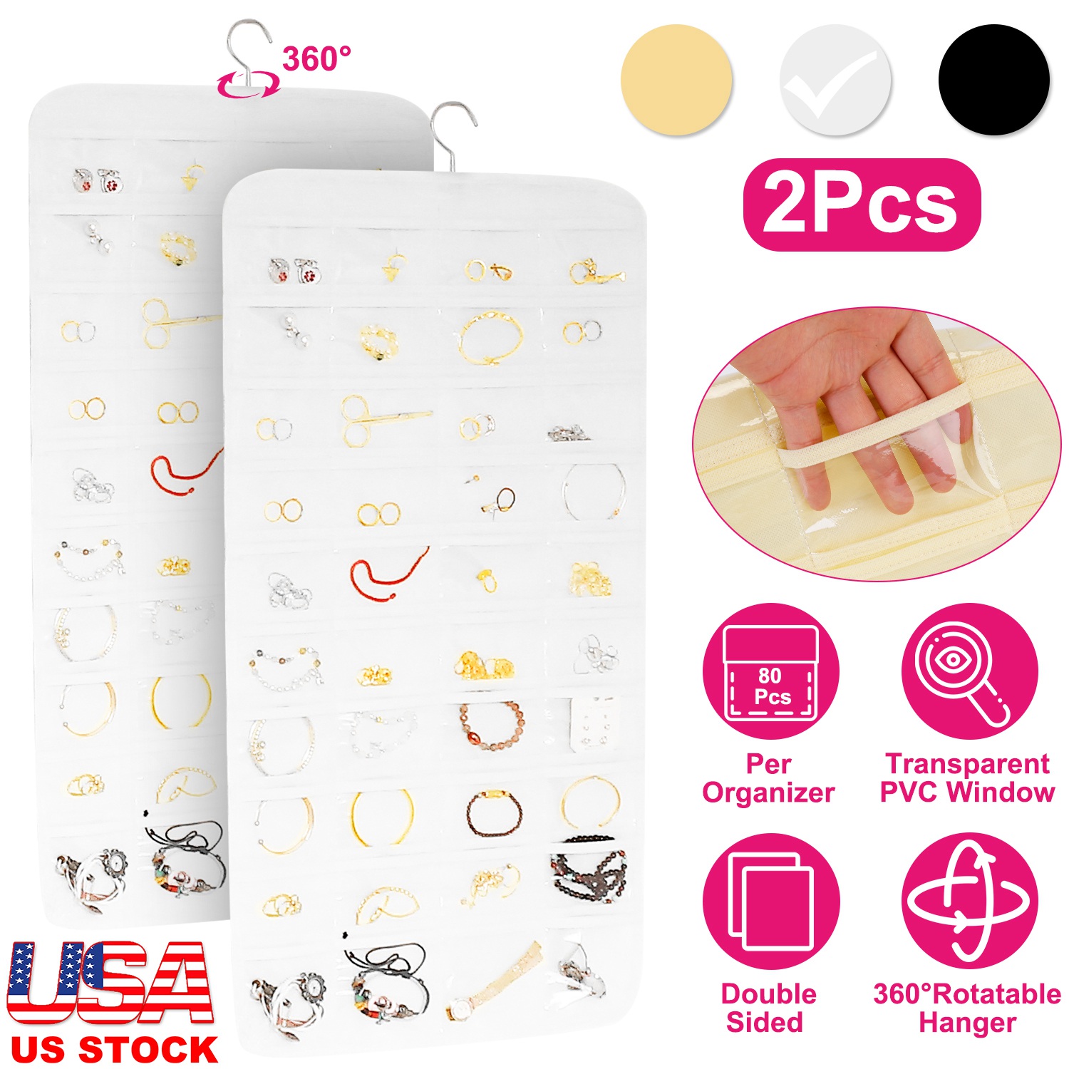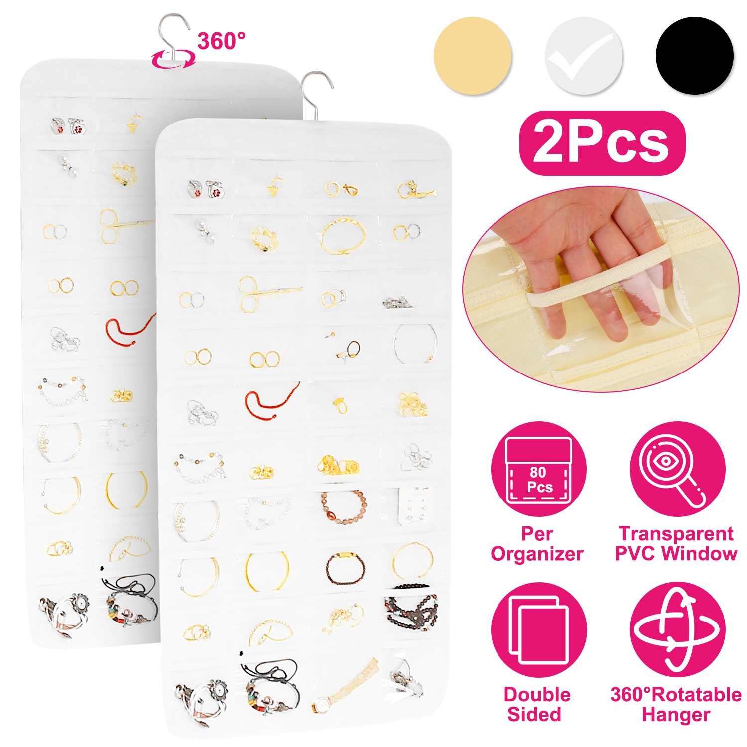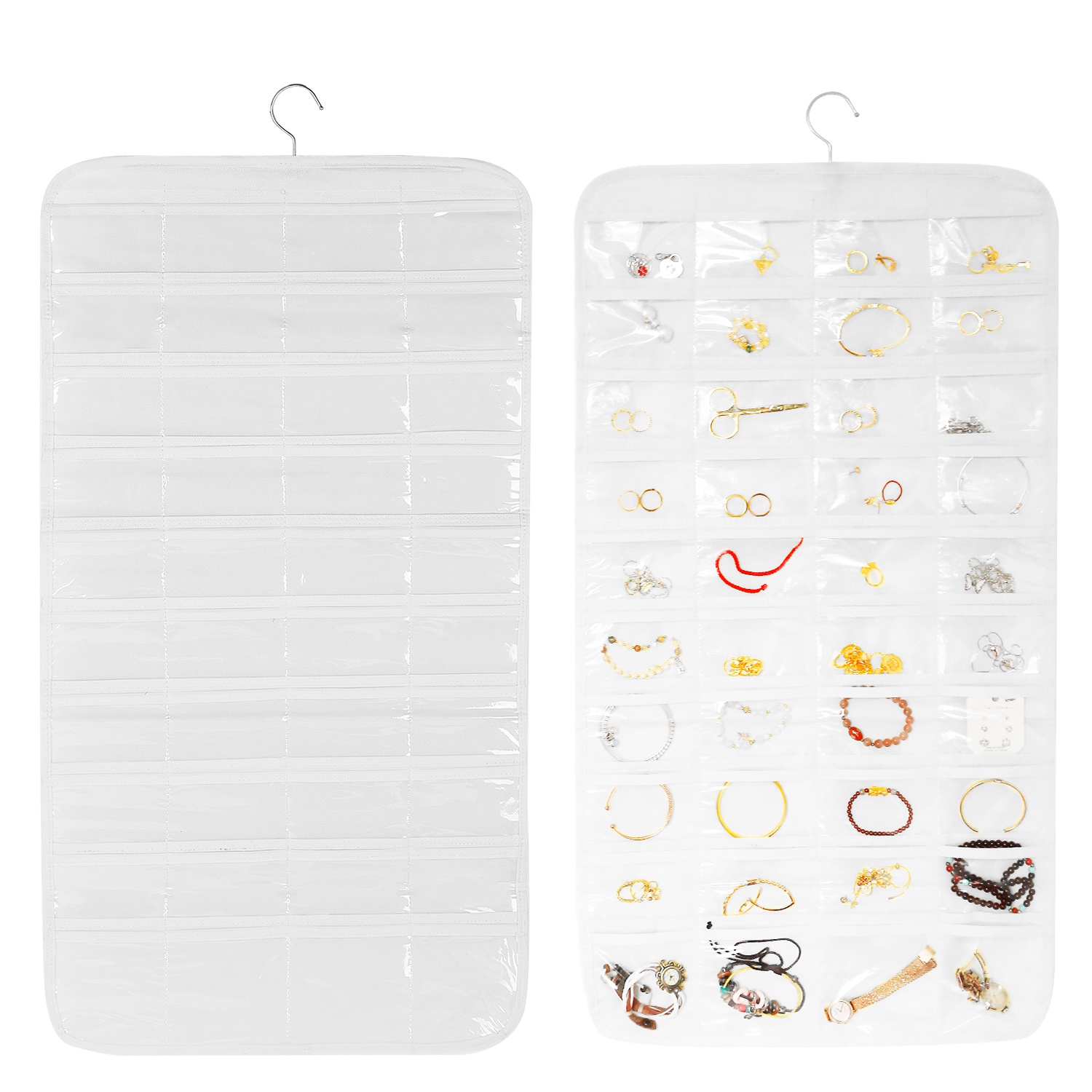 Home > 2Pcs Hanging Jewelry Organizer Earring Necklace Bracelet Holder Double-sided 80 Pockets Accessory Storage Pocket