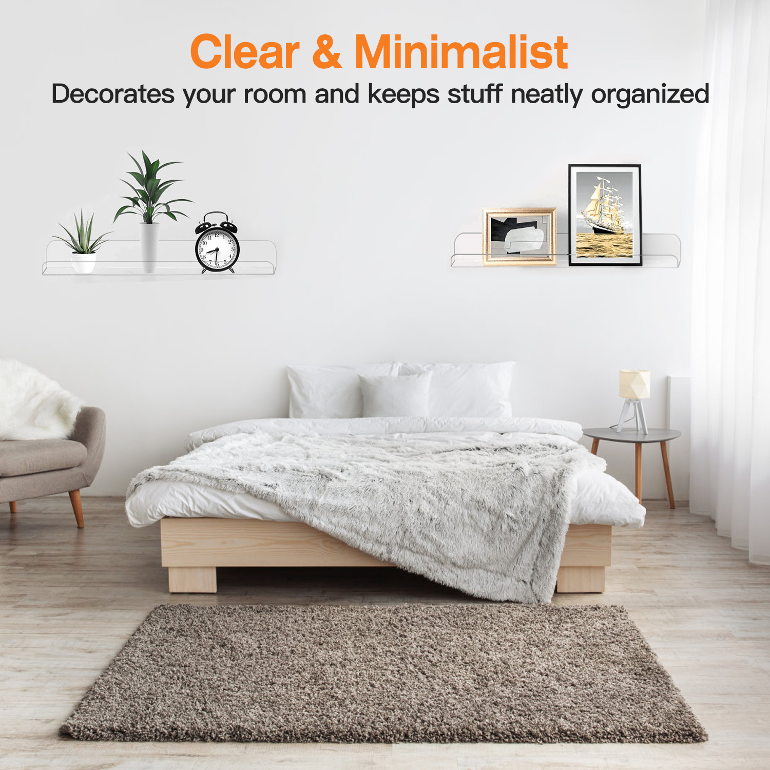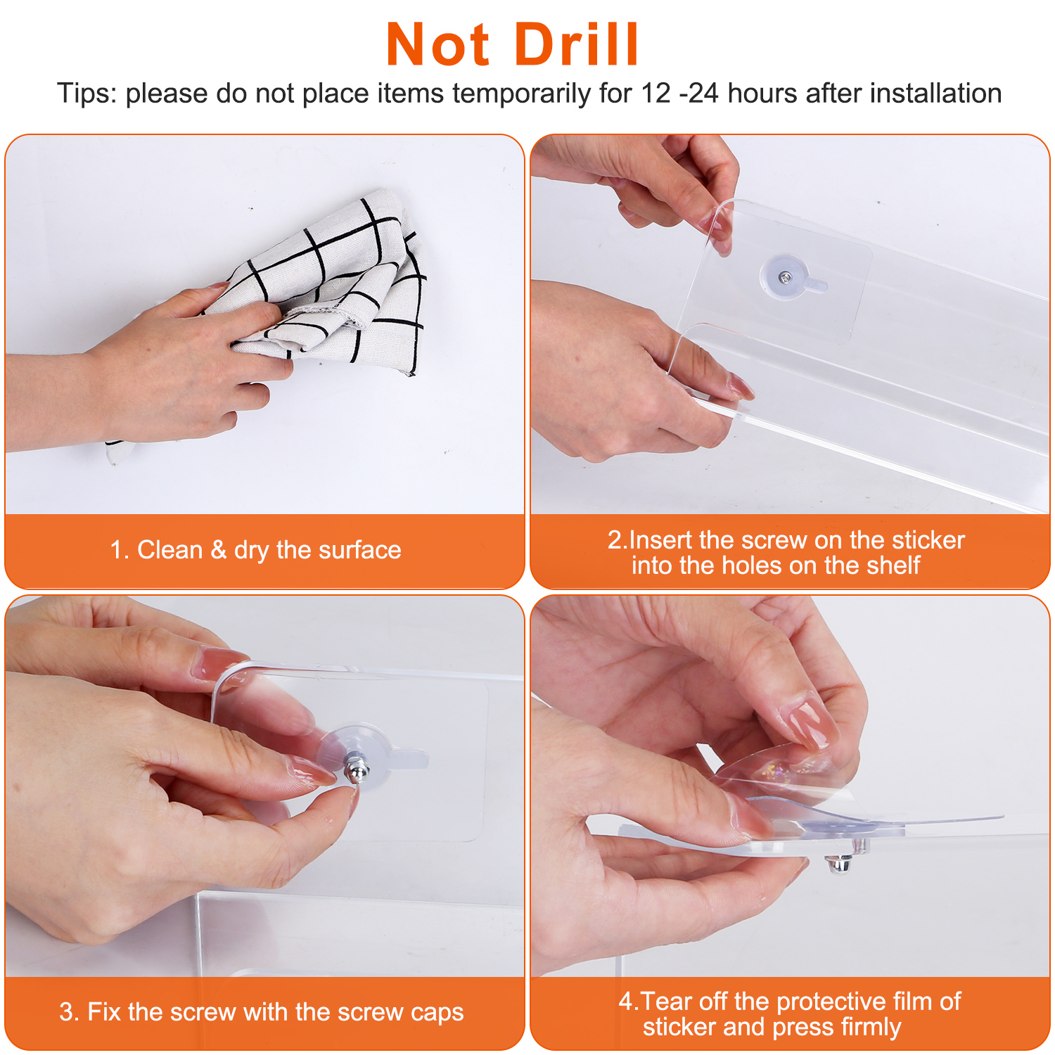 Home > 4 Pack 15In Clear Acrylic Floating Shelves Bookshelves with 2 Mounting Ways Wall Mounted Organizer for Kitchen Bathroom Study Living Room Bedroom Offi