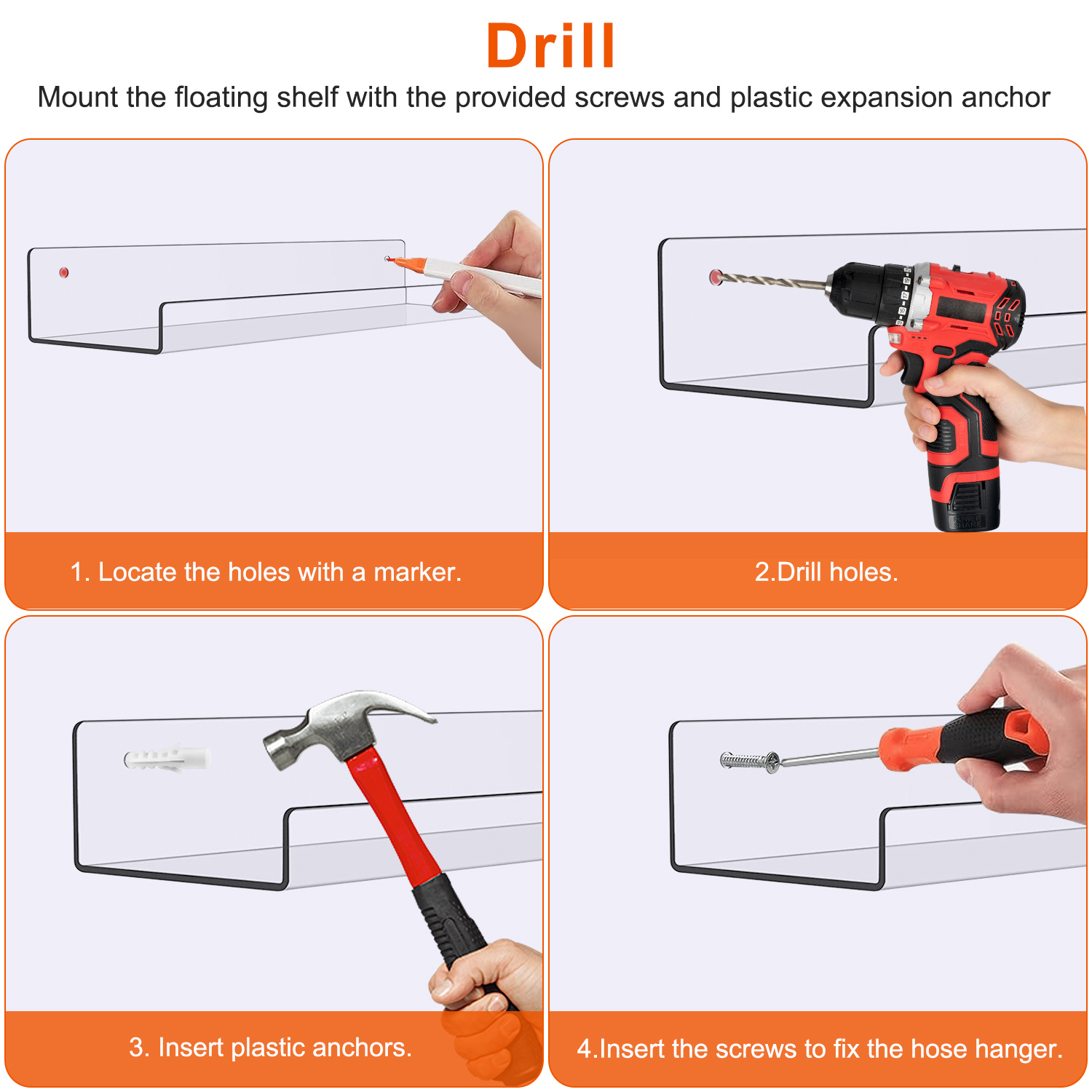 Sometimes you just have a feeling that the wall needs to be decorated or utilized for space saving. Our clear floating shelves provide a modern outlook to any room in your house or office. Comes with 4 packs, you can freely combined the 4 layers to maximize the wall space more efficiently, perfect displaying a wide range of collectibles, potted plants, photo frames, books etc.. You can also install it in your bathroom or kitchen to store your toiletries, cosmetics or condiments neatly. Suitable for bedroom, living room, bathroom, store, office etc.. Provides 9 screws, 9 plastic expansion anchors, 9 screw caps and 9 strong stickers for installation. Drill or not drill, that’s your call!