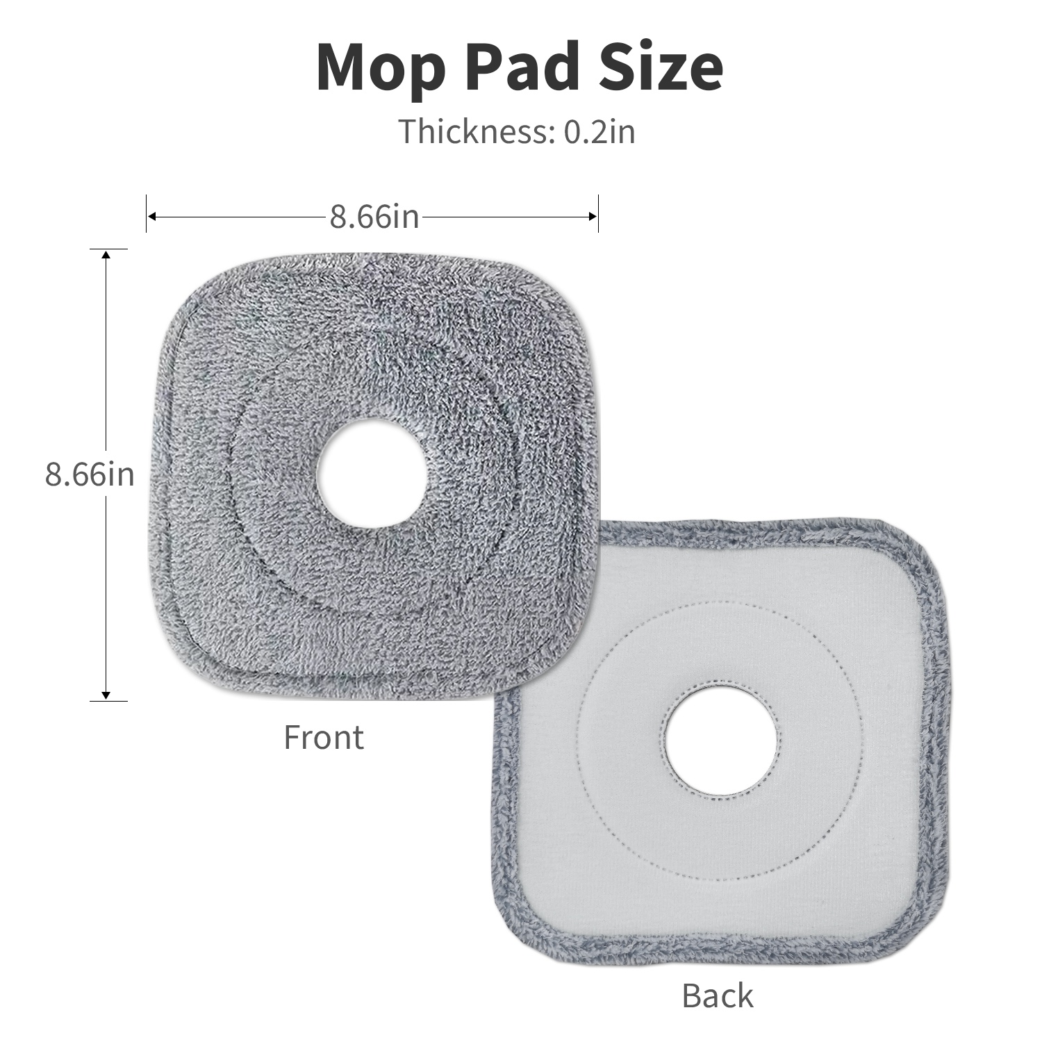 Come with 5 packs replacement mop pads, allows for convenient replacement. Adopt advanced microfiber, can easily capture wet or dry dirt and absorb pet fur, hair, debris, dust, oil or other stubborn stain, durable and reusable. Good absorption helps the floor dry faster. Widely used for most smooth floors, such as vinyl floors, wooden floor, glass windows, cars, etc.. Suitable for Square Mop and and Bucket Set.
