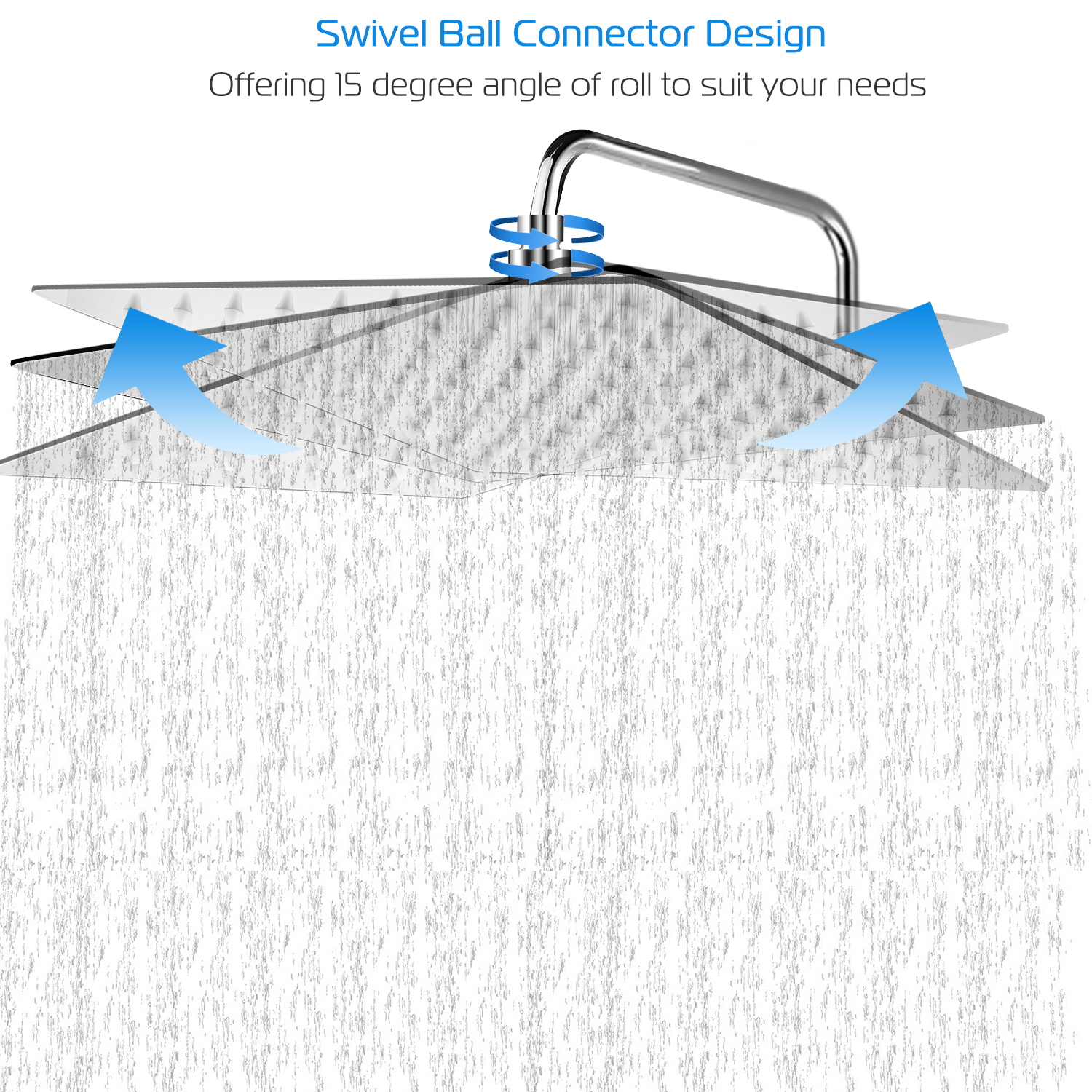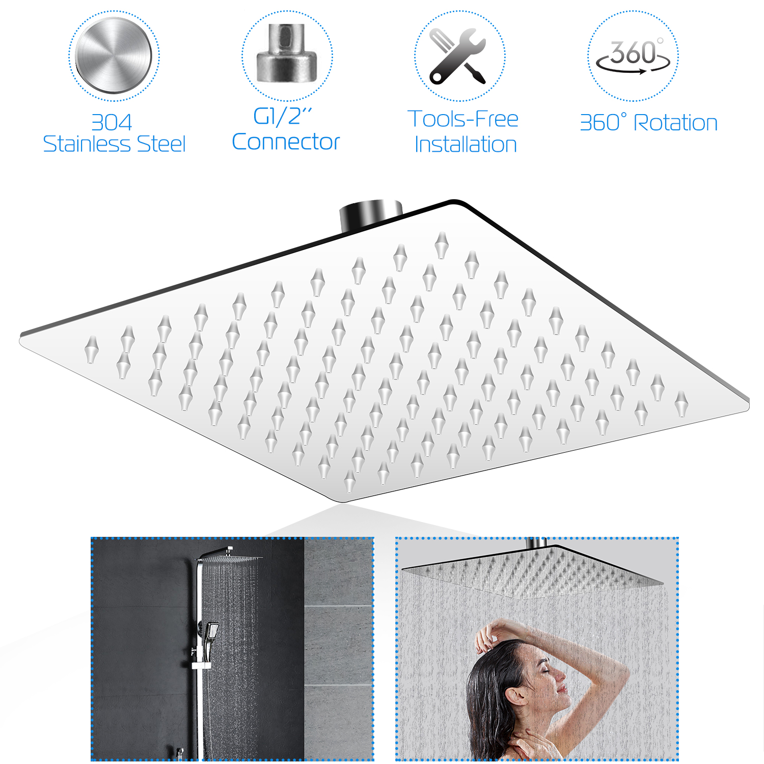 Home > 8 Inch Rain Shower Head 304 Stainless Steel Rainfall Adjustable Ultra-Thin Square Head
