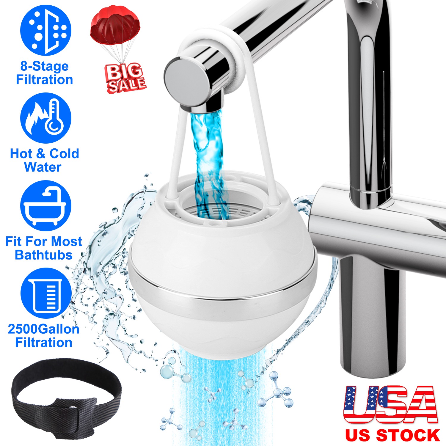 Home > 8 Stages Bathtub Ball Filter 2,500 Gallons of Filtration BPA Free Bathtub Ball Filter Reduce Contaminants for Smooth Soft Skin Hair All Year Round Pro