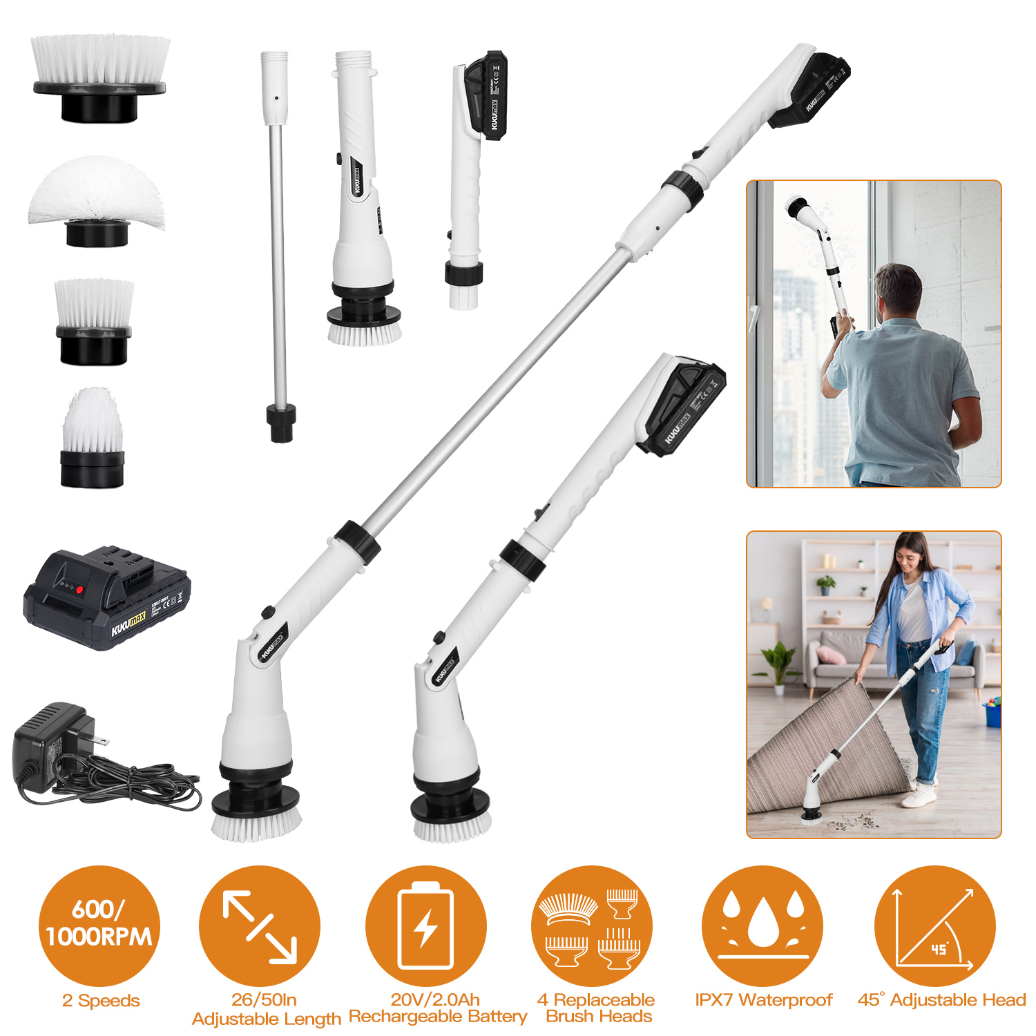 Electric Spin Scrubber Cordless Handheld Rechargeable Cleaning Brush with 4 Replaceable Heads 600/1000RPM Speeds 26/50in Length 20V/2.0Ah Battery for Electric Spin Scrubber Cordless Handheld Rechargeable Cleaning Brush with 4 Replaceable Heads 600/1000RPM Speeds 26/50in Length 20V/2.0Ah Battery for Electric Spin Scrubber Cordless Handheld Rechargeable Cleaning Brush with 4 Replaceable Heads 600/1000RPM Speeds 26/50in Length 20V/2.0Ah Battery for Electric Spin Scrubber Cordless Handheld Rechargeable Cleaning Brush with 4 Replaceable Heads 600/1000RPM Speeds 26/50in Length 20V/2.0Ah Battery for Electric Spin Scrubber Cordless Handheld Rechargeable Cleaning Brush with 4 Replaceable Heads 600/1000RPM Speeds 26/50in Length 20V/2.0Ah Battery for
