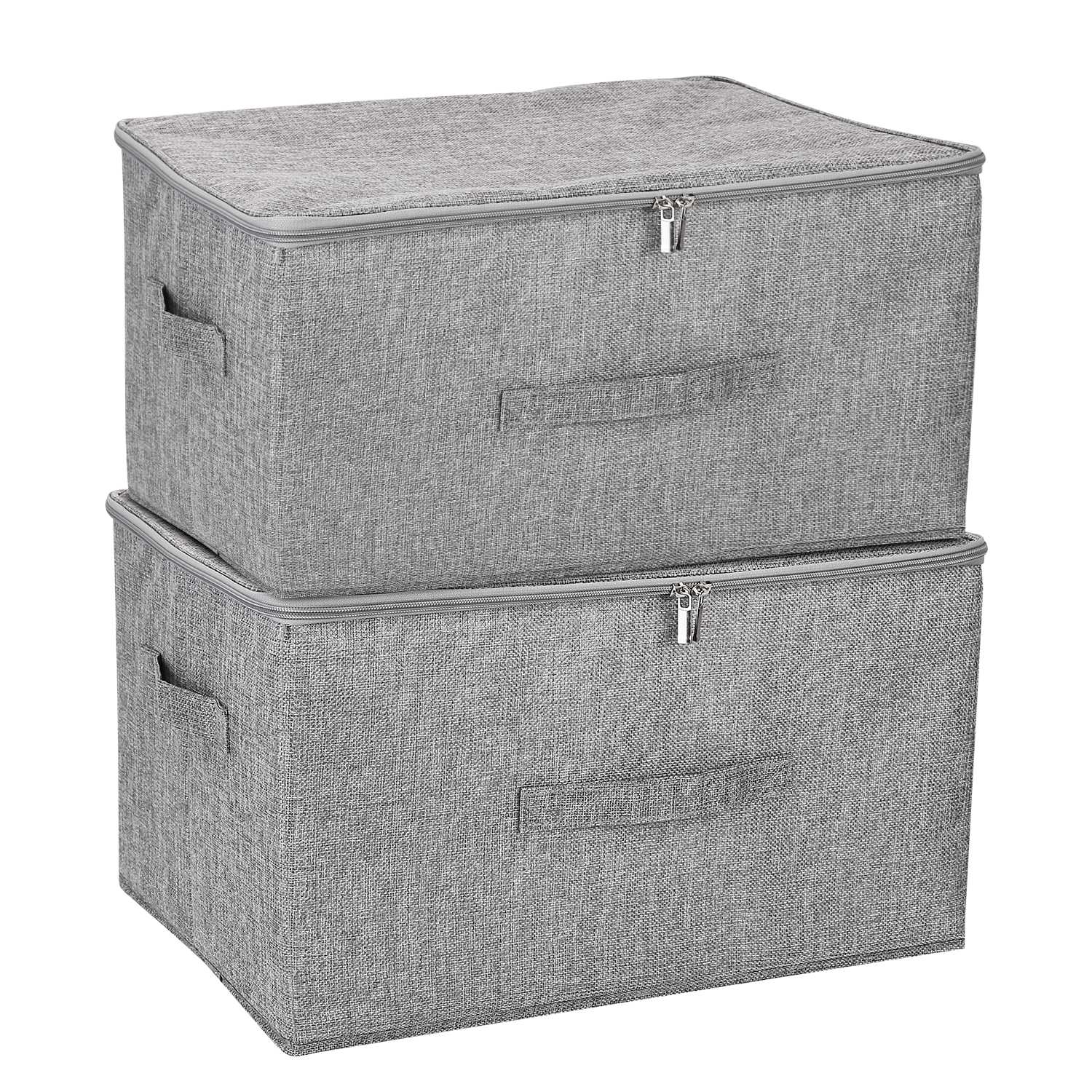 The clothes storage box with 35L capacity per box, is spacious enough for you to contain your jackets, toys and other clothes. Made from premium polyester and PP board, it’s dust-proof and moisture-resistant to protect your stored articles. With two-way smooth zippers, very convenient to organize or take out the items you want. Suitable for attic, dormitory, bedroom, basement and so on.