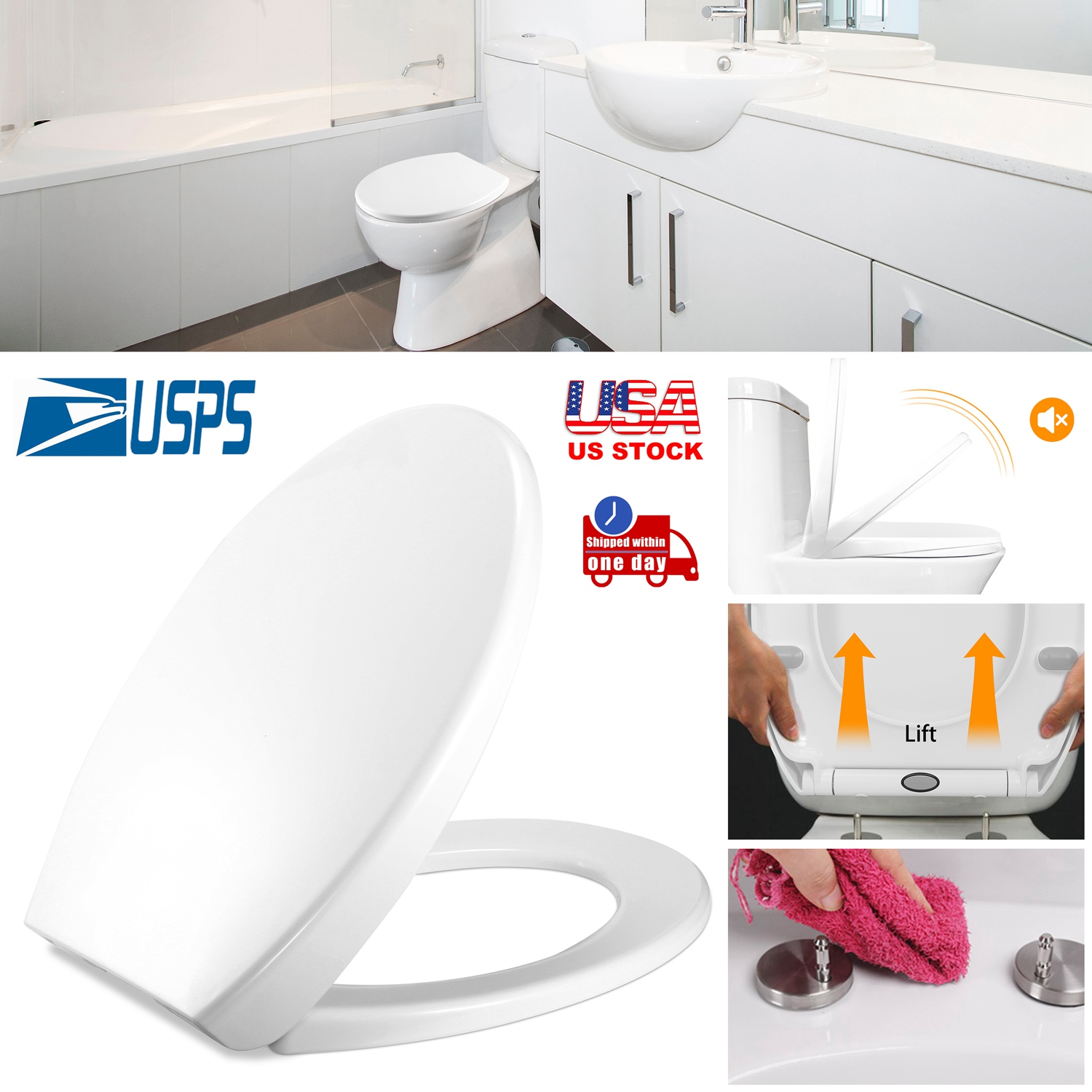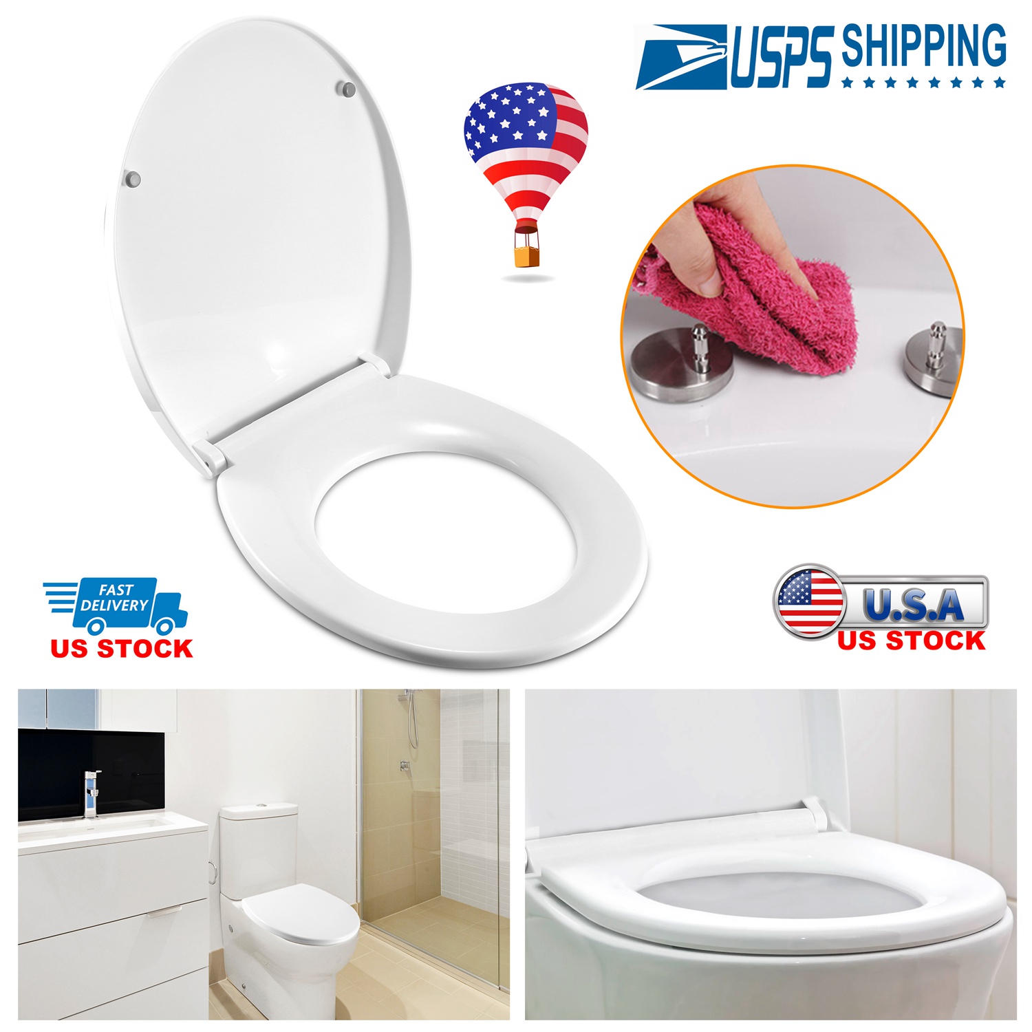 Our oval-shaped toilet seat (7.72in-L x 14.97in-W x 1.77in-H) is made from premium urea-formaldehyde materials, high hardness, strong toughness, scratch-resistant, abrasion-resistant and no fade. Adopting slow-close design, it can be closed slowly to avoid loud slam, cracked toilets and pinched fingers. Additionally, it can be installed easily and securely with a set of quick-attach mounting accessories and removed instantly for a thorough cleaning with its designed quick-release buttons.