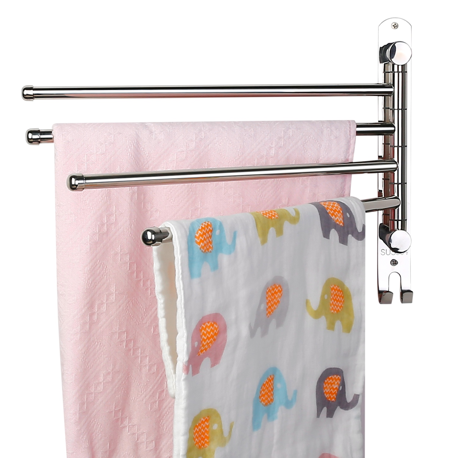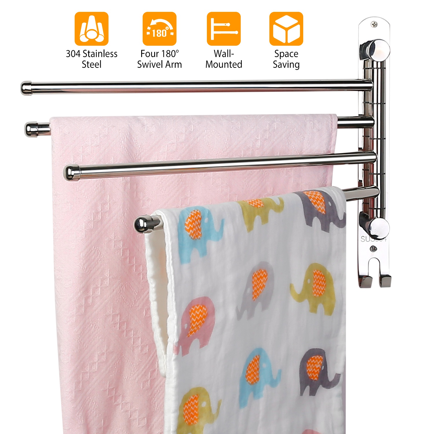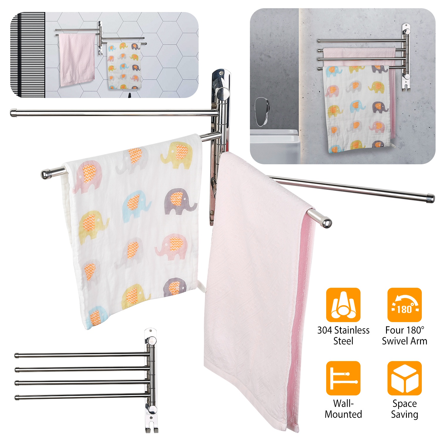 Home > 4-Arm Wall-Mounted Swivel Towel Rack Rail 304 Stainless Steel Swing Towel Hanger Holder 13in Swing Towel Bar
