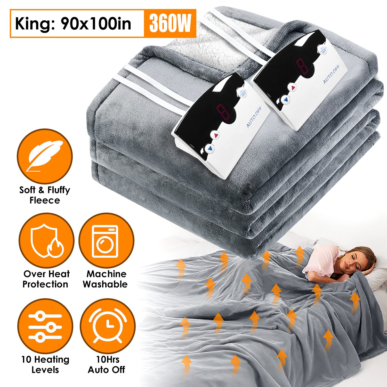 Electric Heated King Size Fleece Heated Blanket with Dual Controller 10 Heating Levels 10 Hours Auto Off Machine Washable for Home Office Usage 90x100