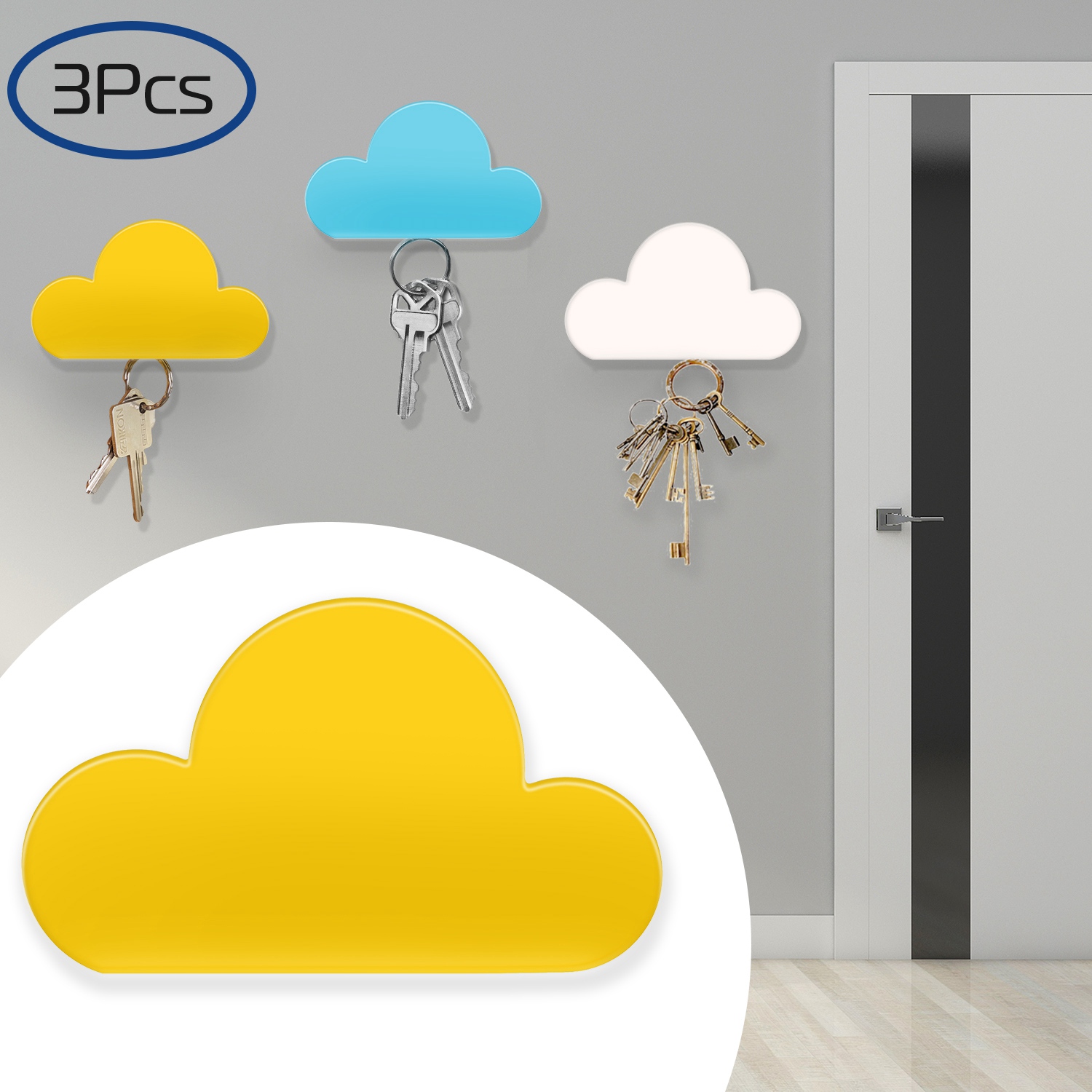 If you are looking for a novel but practical key holder, our magnetic key holder maybe interests you. Our magnetic key holder is built-in strong magnet, which offers you a more convenient and funny method to organize your keys. And owning a large self-adhesive tape on its back, our magnetic key holder is easy to install. Additionally, owning a delicate cloud shape with 3 different colors (coming with 3pcs, one pcs one color), our magnetic key is a great prop for you to decorate your wall, refrigerator or any place at your home.