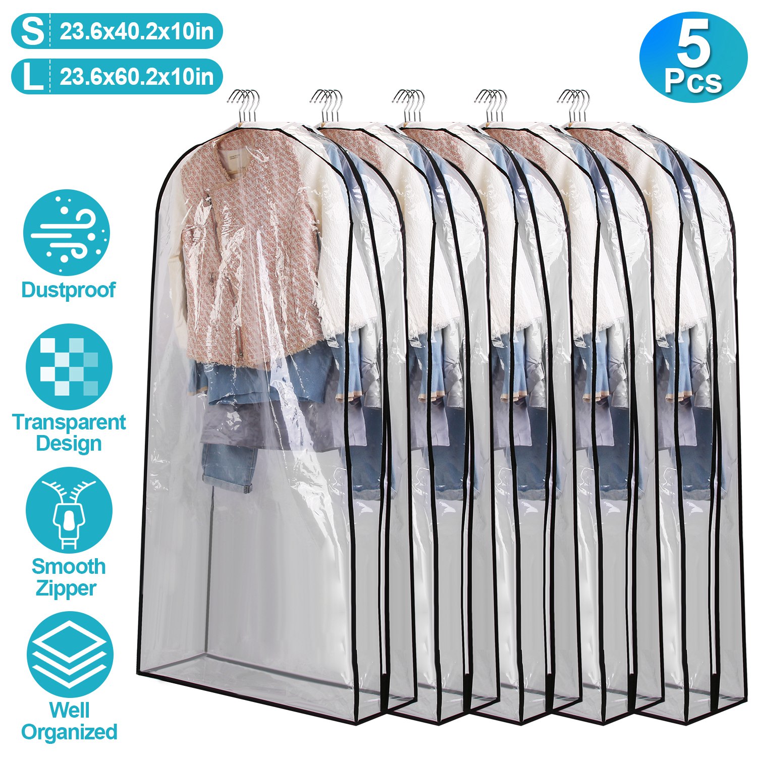 Home > 5 Pack 60In Garment Bag for Hanging Clothes Dustproof Waterproof Hanging Clothes Storage Bag Clear Transparent Suits Cover for Sweater Jacket Coat Dre