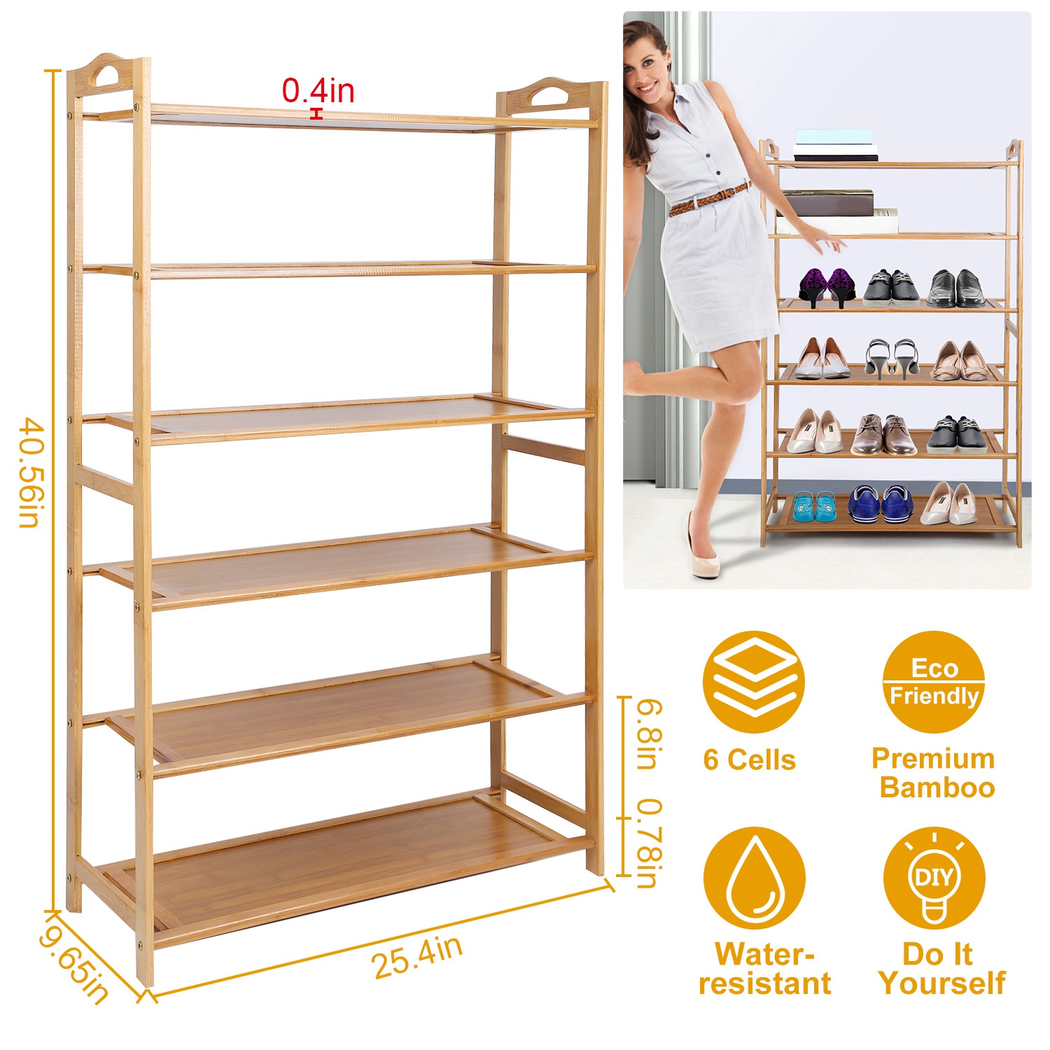 6 Tier Bamboo Shoe Rack Organizer Shoe Self Storage Entryway Standing Shelf Shoe Tower