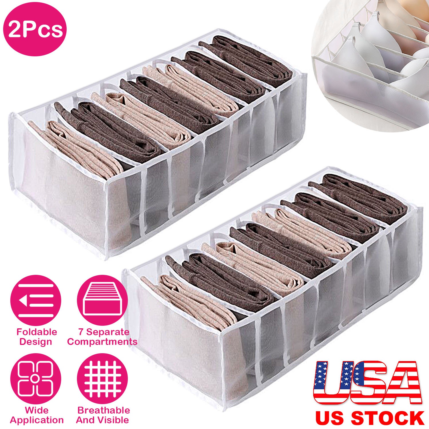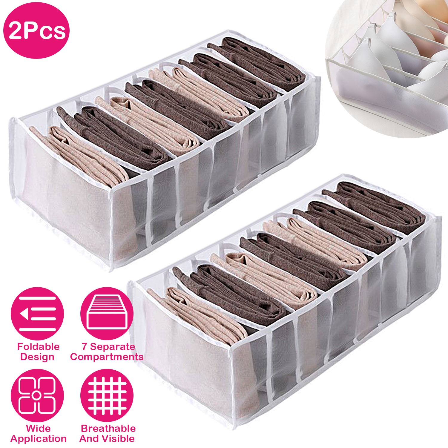 2Pcs Wardrobe Clothes Organizer 7 Grids Foldable Garment Underwear Bra Sock Storage Box Drawer Divider Bin Container