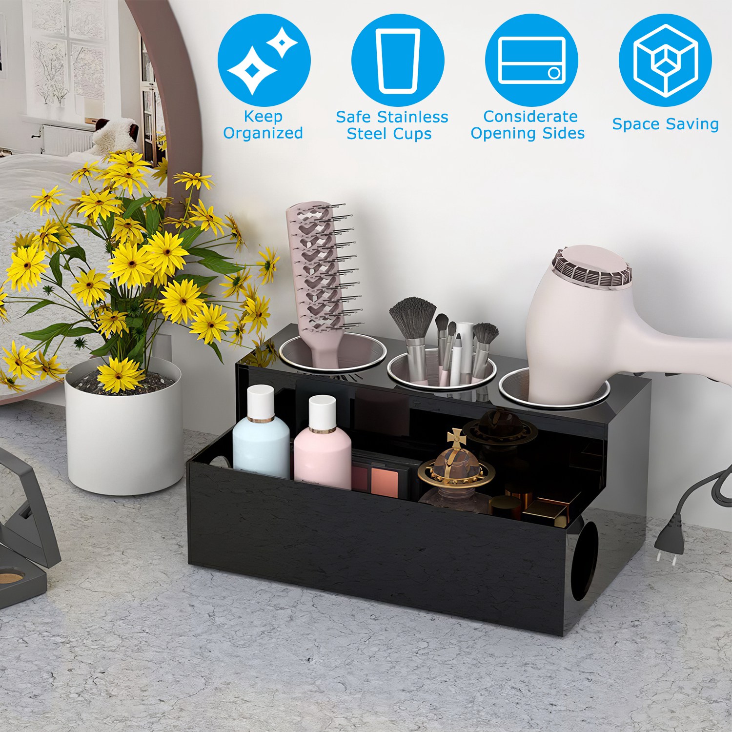 Home > Hair Dryer Organizer Acrylic Hair Styling Tools Organizer Blow Dryer Curling Irons Tray with 3 Stainless Steel Cups for Hair Dryer Flat Irons Curling