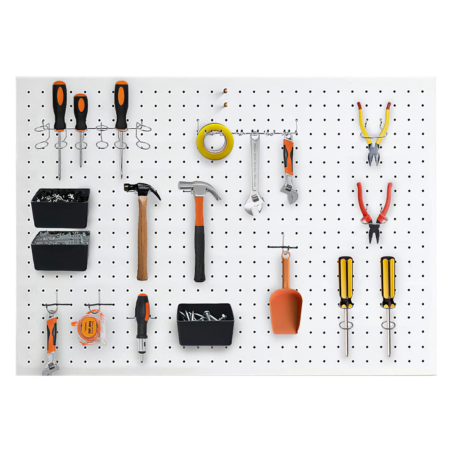 Our total 240Pcs pegboard accessories including 17 different types of peg board hooks like pegboard bins, pegboard cups, straight hooks, angled hooks, curved hooks, and more, are specially designed for all metal, wooden or plastic pegboards with 1 inch spaced holes and 0.24in-diameter hole. Take it home to DIY your pegboard as you desired and keep your items/ tools orderly. Perfect use in garages, workbench, kitchen, shop, school to hold paint brushes, extension cords, sports equipment, kids toys, etc..