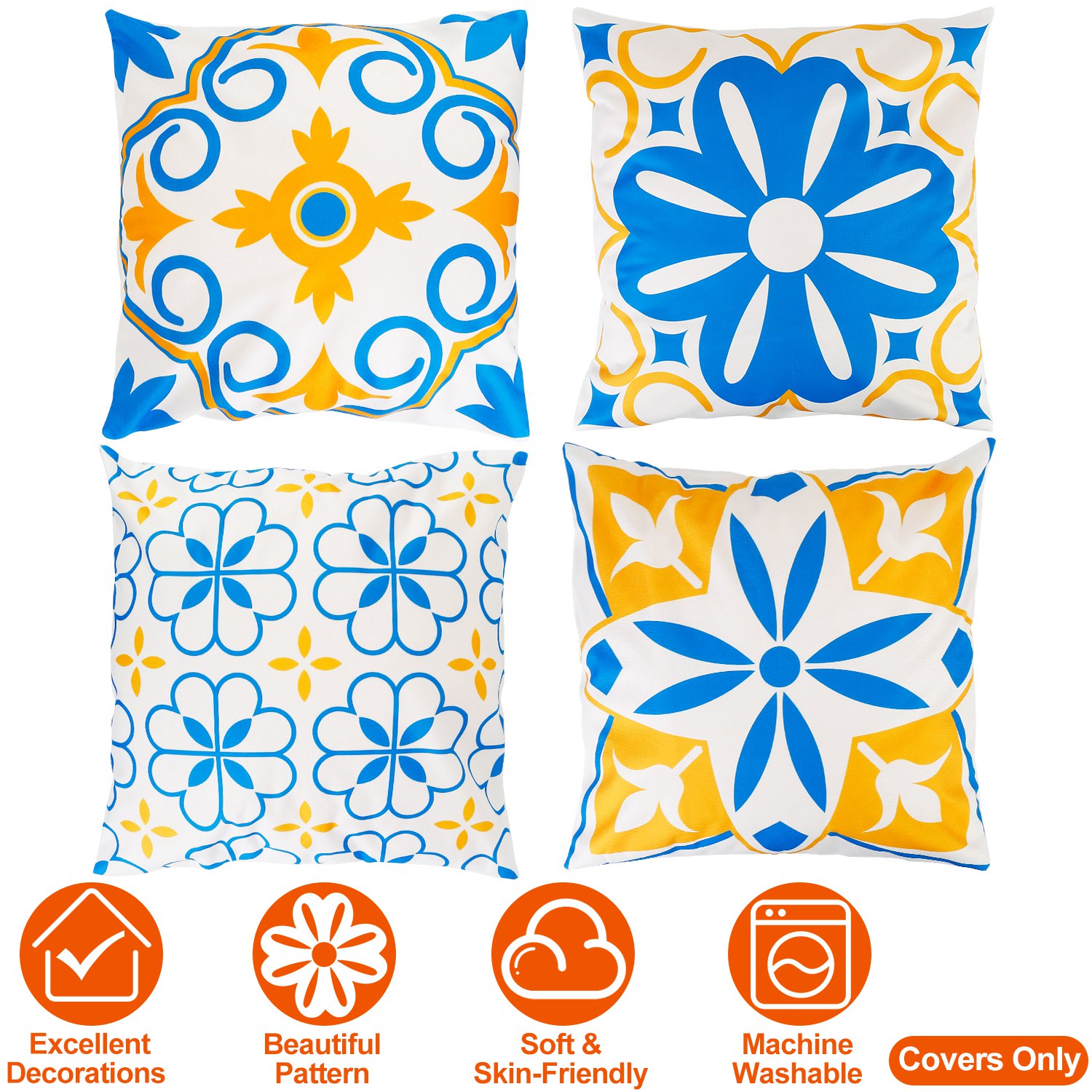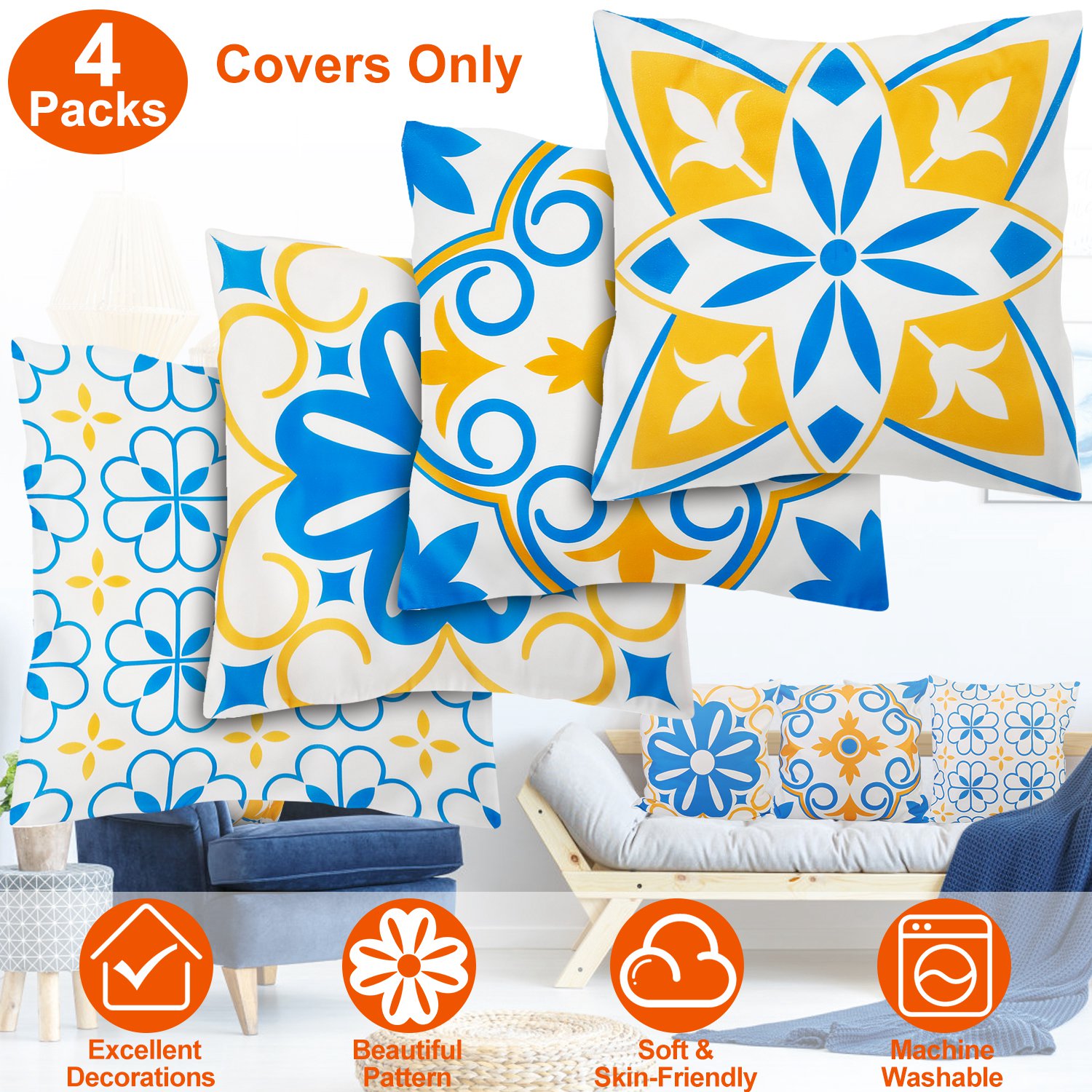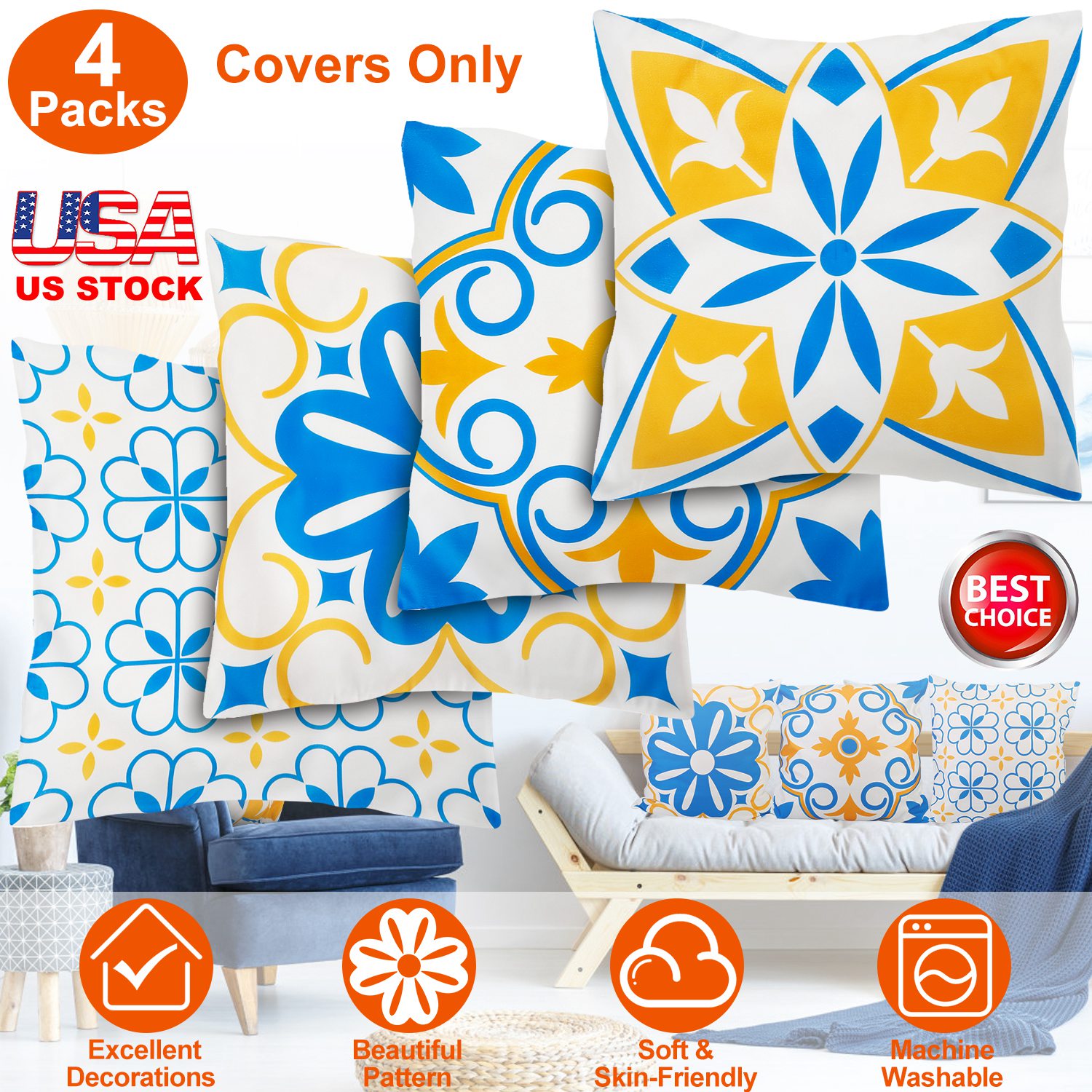 Are you looking for a way to decorate your home and improve your life? Our 4 packs delicate pillow covers printed with beautiful patterns with blue, yellow and white color provides you with different visual effect, perfect match your outdoor and indoor furniture, making your life more happy and comfortable. And the skin-friendly surface allows you to comfortably hold, lean against or rest.