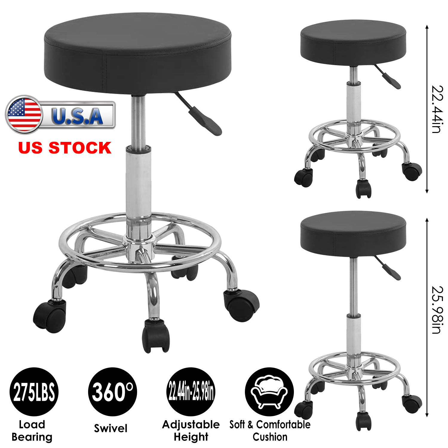 Home > Round Bar Stool Height Adjustable Salon Stools Leather Swivel Rolling Chair with Casters 275LBS Load Bearing for Kitchen Bar Dining Office