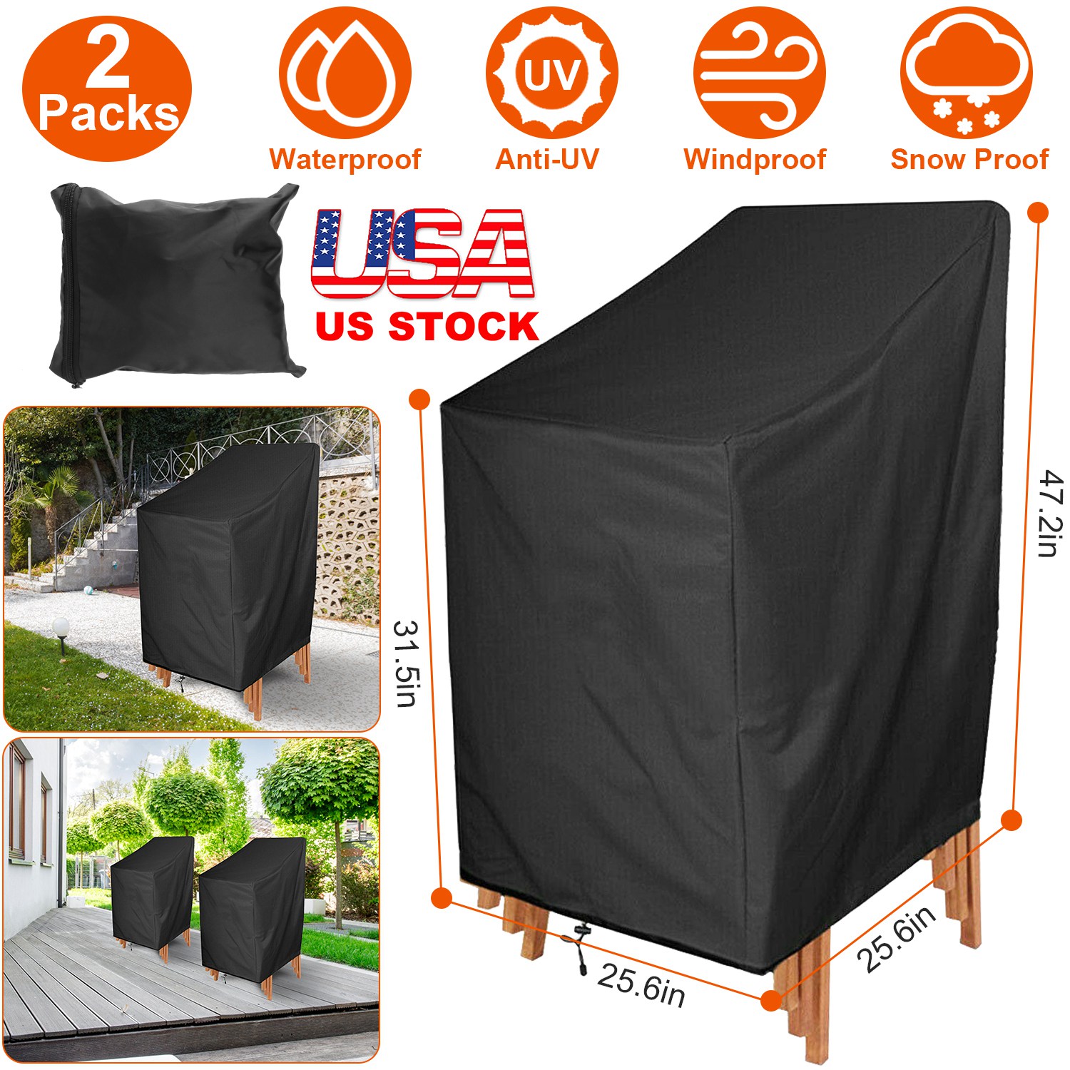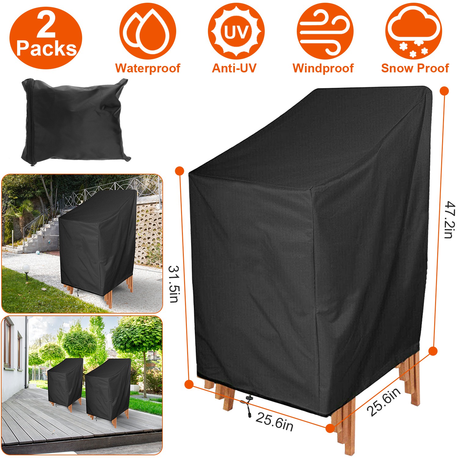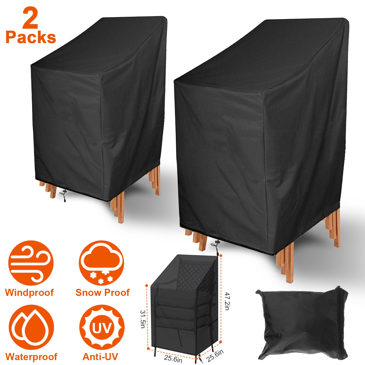 Home > 2 Packs Patio Chair Covers Waterproof Outdoor Furniture Protector Anti-UV Stacking Chair Cover 47.2"x25.6"x25.6" w/ Drawstring Storage Bag