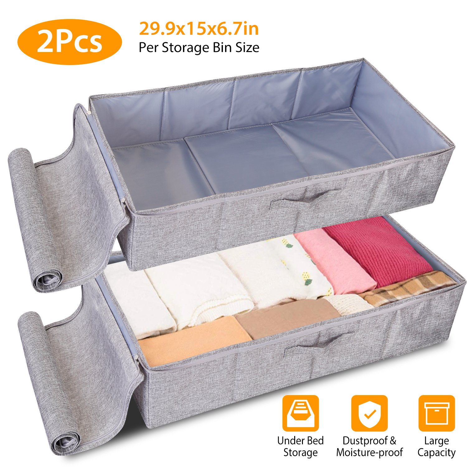 Home > 29.9x15x6.7in under Bed Storage Bin Box Foldable Zipped Bag Organizer Container Case for Clothes Blankets Set Of 2