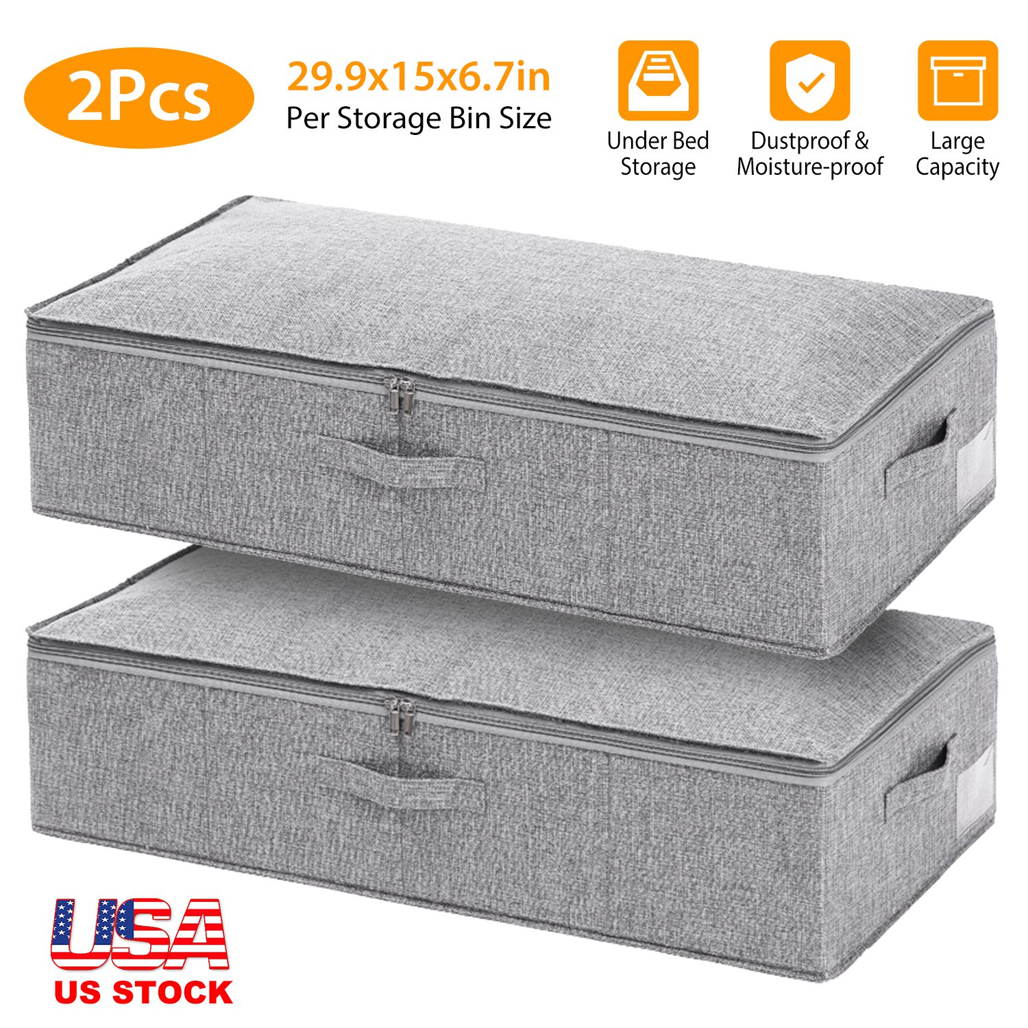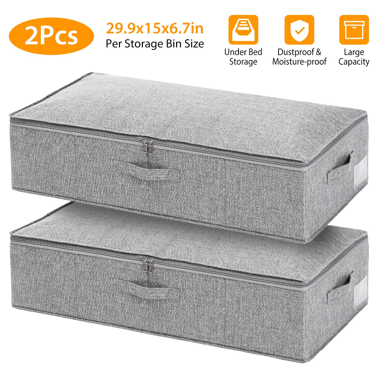 29.9x15x6.7in under Bed Storage Bin Box Foldable Zipped Bag Organizer Container Case for Clothes Blankets Set Of 2