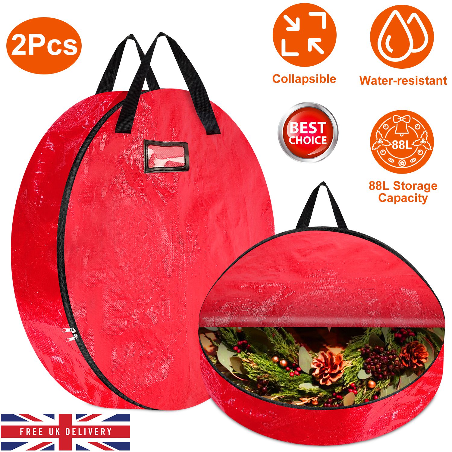 2Pcs φ30in Christmas Wreath Storage Bag 88L Water-resistant Foldable Wreath Container Bag w/ Handles Card Slot