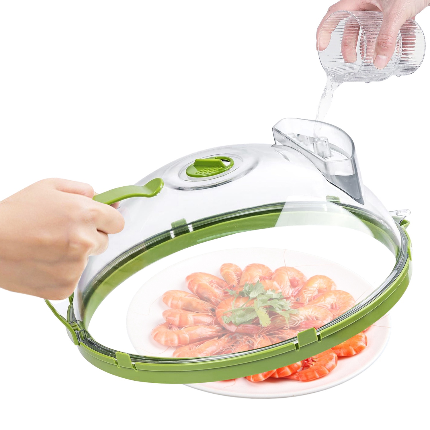 Home > 2Pcs Transparent Microwave Covers for Food Splatter Cover Lid Food Splatter Guard Protector with Handle Adjustable Steam Vents Water Storage Box