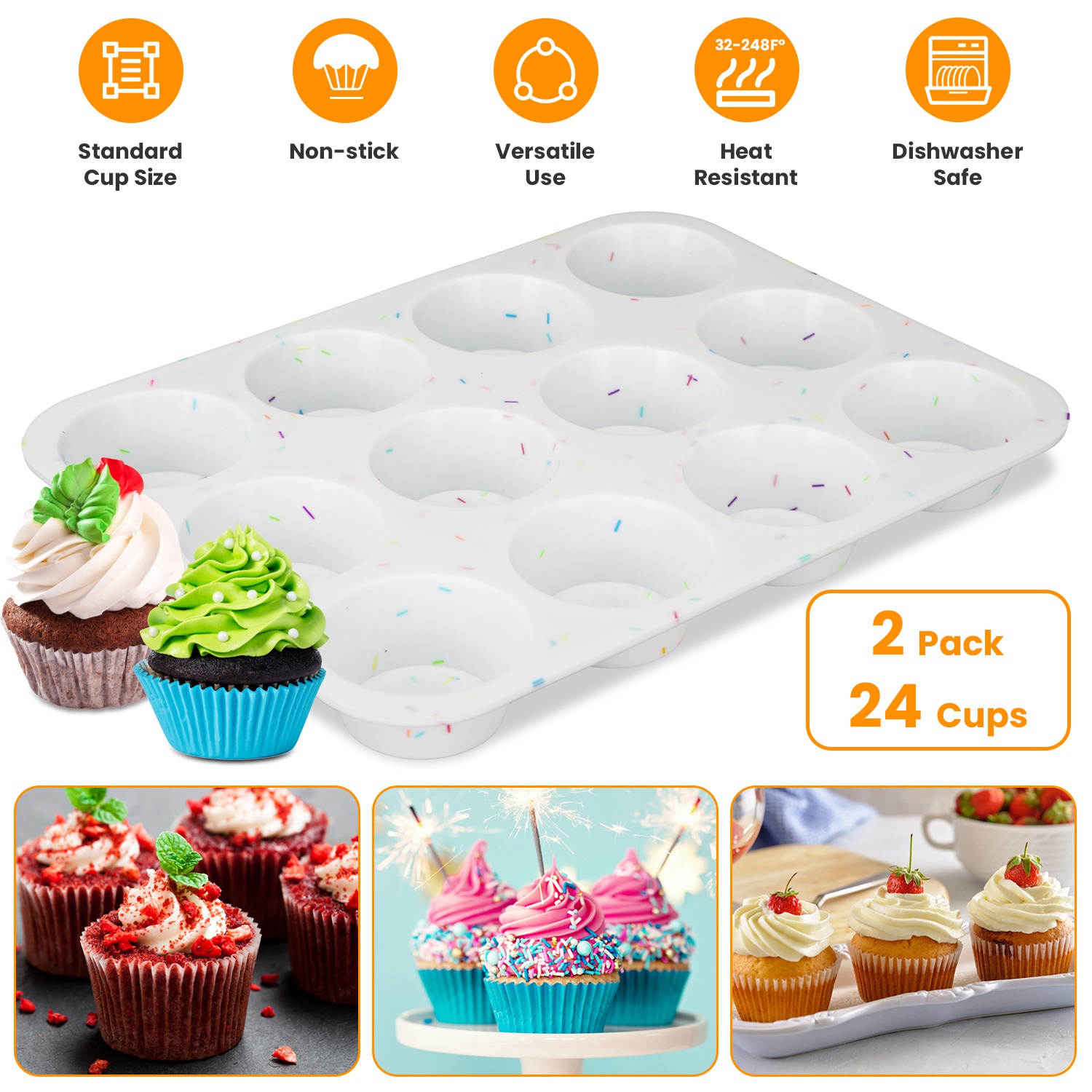 Home > 2 Pack 12 Cups Silicone Muffin Pans Nonstick Cupcake Tins Trays Regular Size Cupcake Molds Heat Resistant Oven Microwave Fridge Freezer Dishwasher Saf
