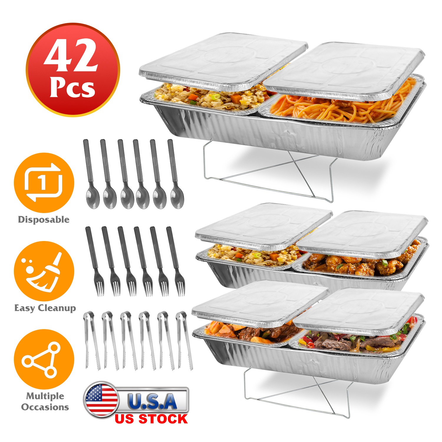 Home > 42Pcs Disposable Chafing Dish Buffet Set Chafing Servers with Covers Spoons Forks Tongs Full-Size Pans Food Warmers for Parties Events Catering Suppli