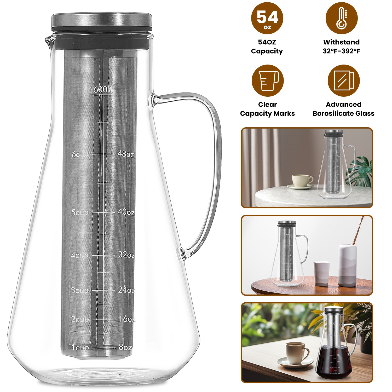 Home > Cold Brew Coffee Maker Iced Tea Maker Pitcher Glass Coffee Pot Brewing Glass Carafe Tea Infuser Coffee Kettle with Removable Fine-Mesh Filter Dishwash