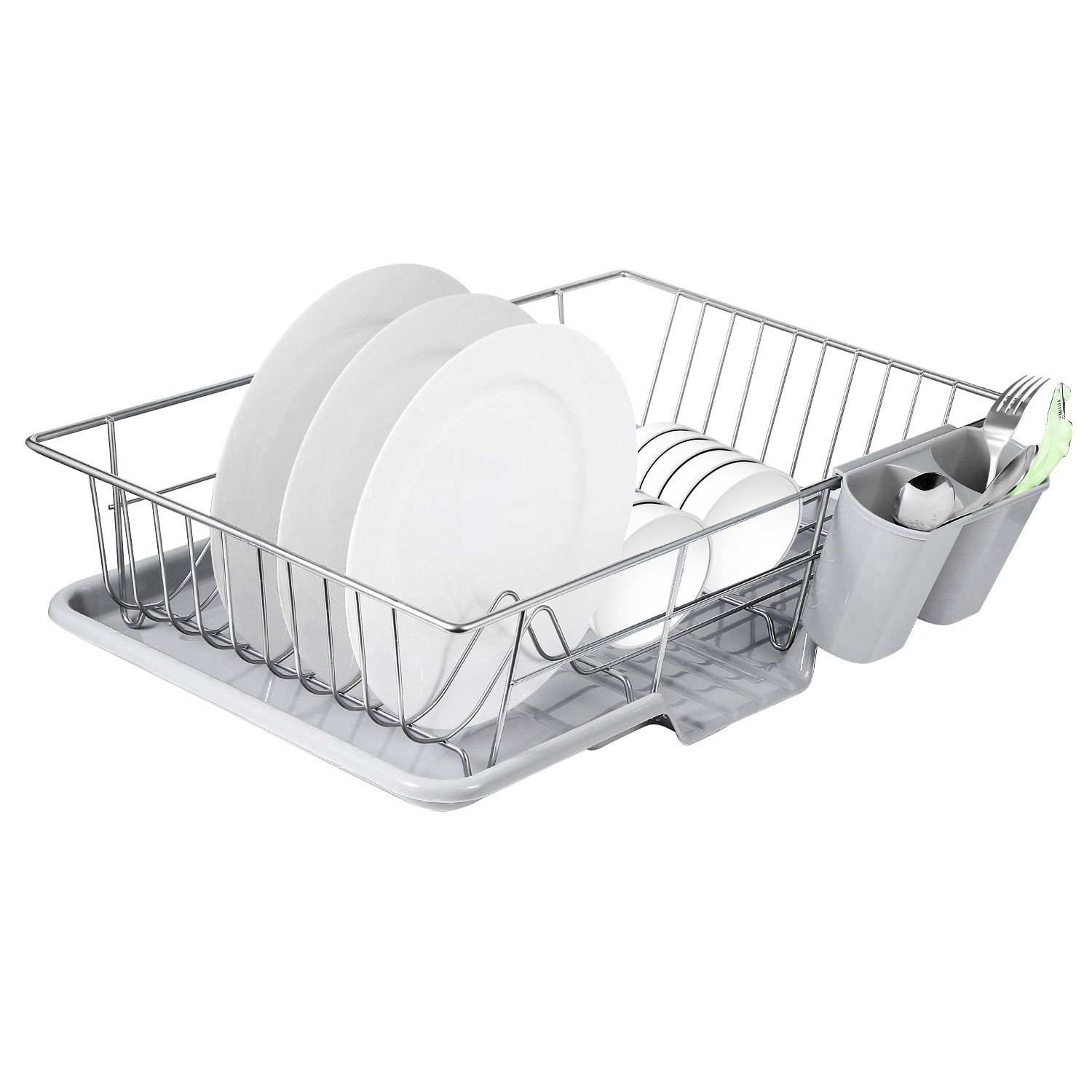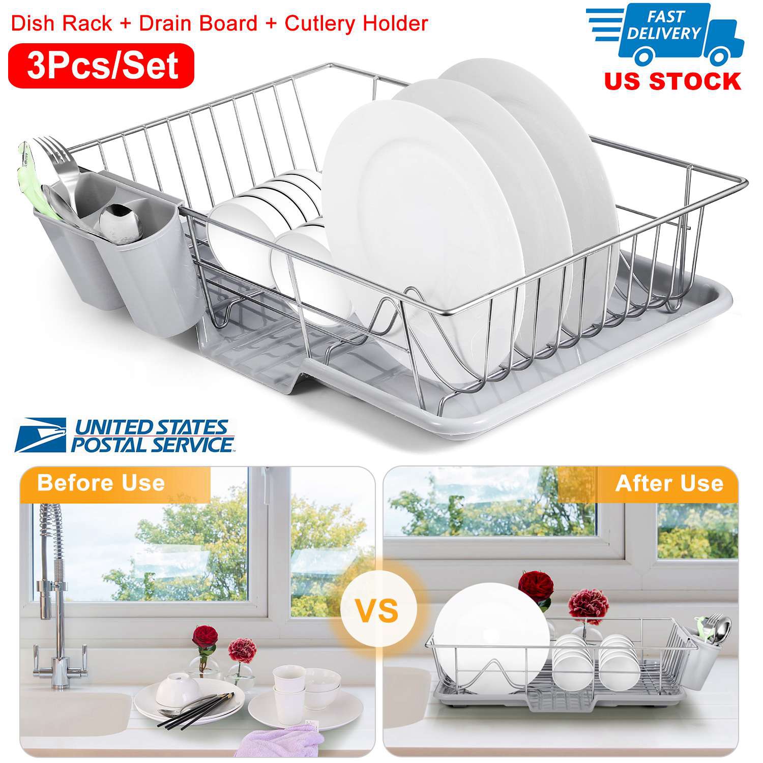 Home > 3Pcs Dish Drainer Drying Rack Set Drainer Drain Board Dish Rack k w/ Plastic Cutlery Holder Drain Board