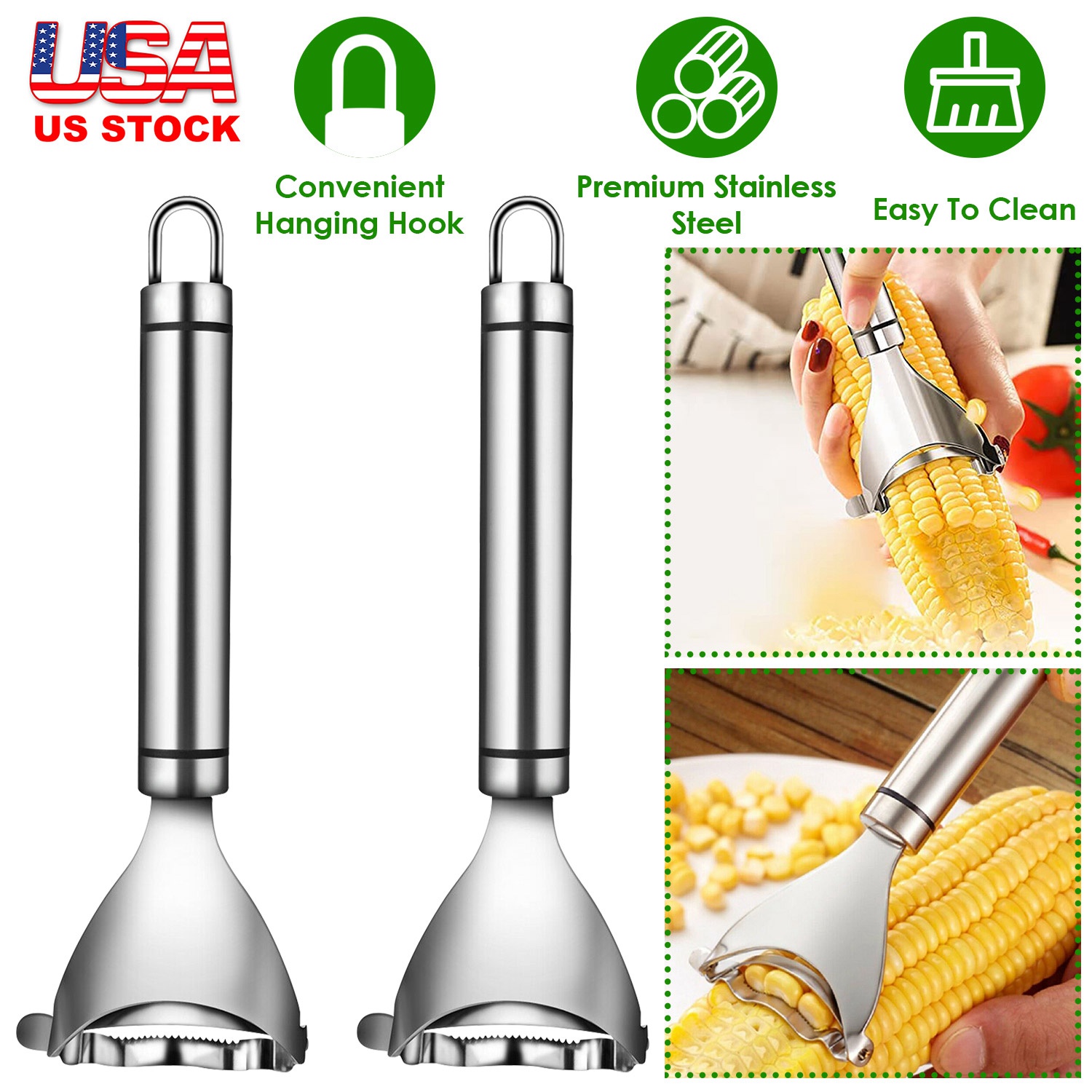 2Pcs Stainless Steel Corn Cob Peelers One-Step Cob Kerneler Remover Kitchen Corn Stripper Cutter Slicer Thresher Tool