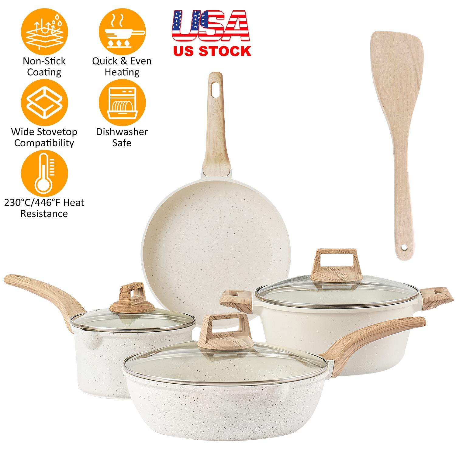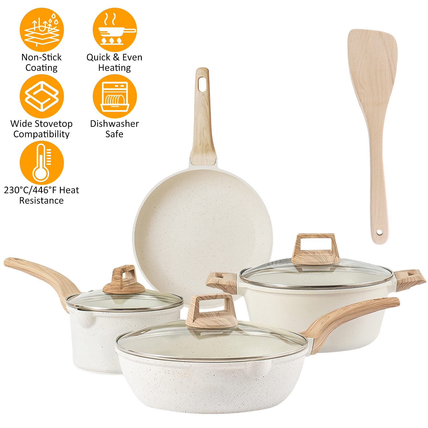 Kitchen Cookware Set Pots and Pans Set White Nonstick Granite Coating Dishwasher Safe Fast Even Heat Induction Frying Pan Stockpot Sauce Pan